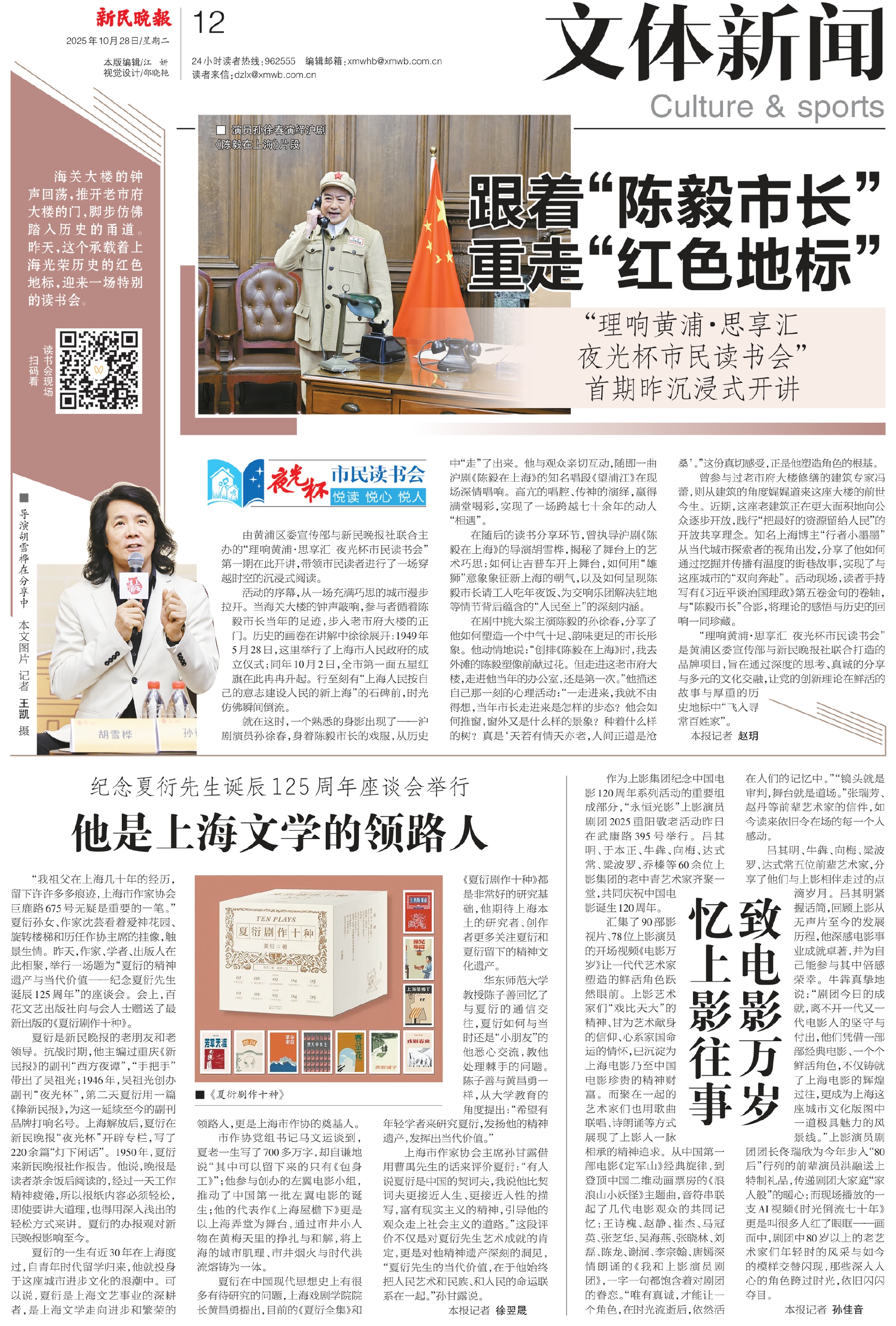 由黄浦区委宣传部与新民晚报社联合主办的“理响黄浦·思享汇 夜光杯市民读书会”第一期在此开讲,带领市民读者进行了一场穿越时空的沉浸式阅读。