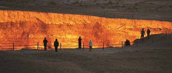 “地狱之门”的诞生颇具传奇色彩:1971年,苏联地质勘探队在卡拉库姆沙漠钻探天然气时,不慎凿穿地下巨型气田,地面塌陷形成直径约70米的圆形大坑。为防止有毒气体扩散,队员点燃坑内天然气,本以为数日内便会燃尽,不料这把火燃烧至今,半个世纪未曾熄灭,烈焰昼夜翻腾,宛如地狱敞开的入口,故而得名。