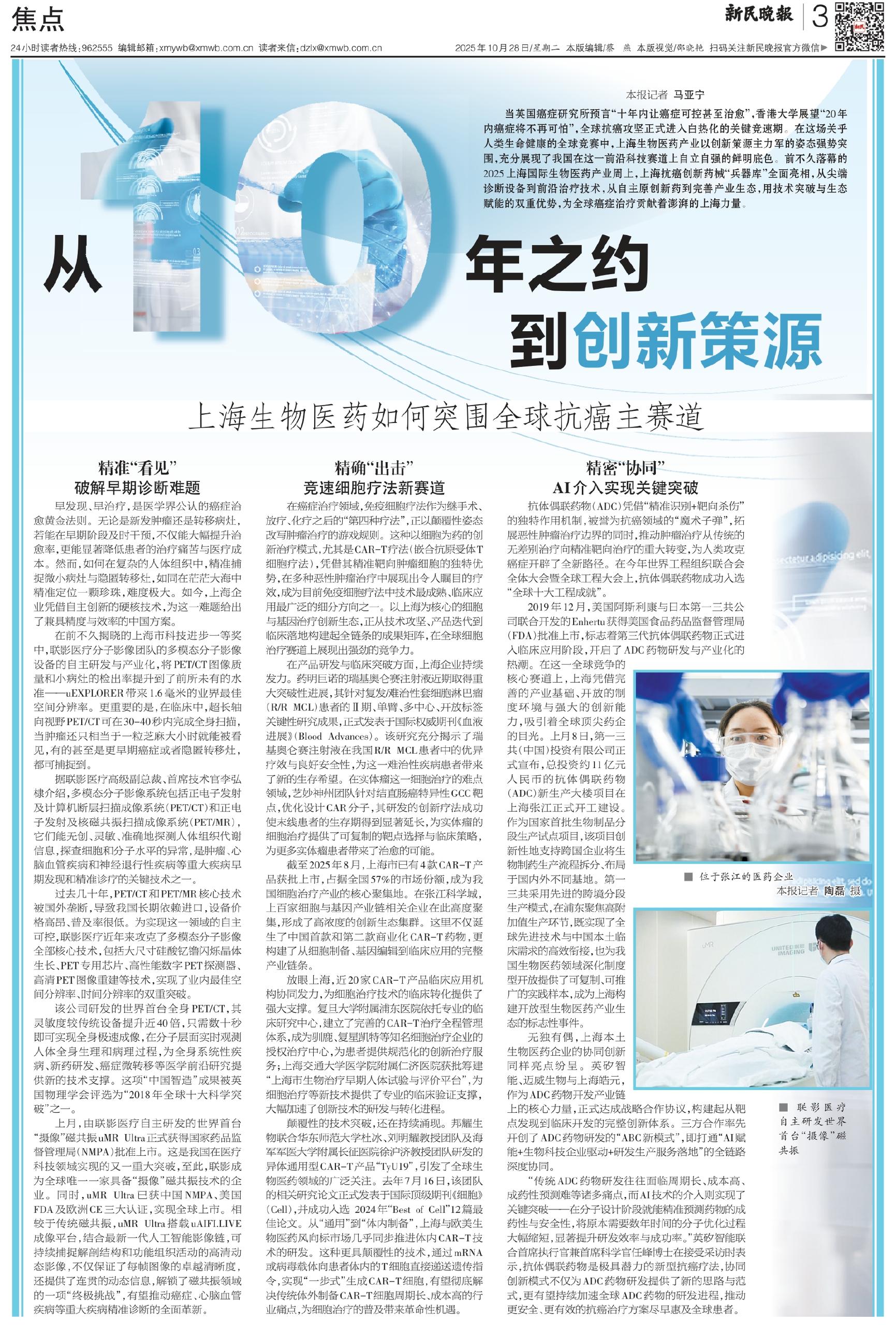 当英国癌症研究所预言“十年内让癌症可控甚至治愈”,香港大学展望“20年内癌症将不再可怕”,全球抗癌攻坚正式进入白热化的关键竞速期。在这场关乎人类生命健康的全球竞赛中,上海生物医药产业以创新策源主力军的姿态强势突围,充分展现了我国在这一前沿科技赛道上自立自强的鲜明底色。前不久落幕的2025上海国际生物医药产业周上,上海抗癌创新药械“兵器库”全面亮相,从尖端诊断设备到前沿治疗技术,从自主原创新药到完善产业生态,用技术突破与生态赋能的双重优势,为全球癌症治疗贡献着澎湃的上海力量。
