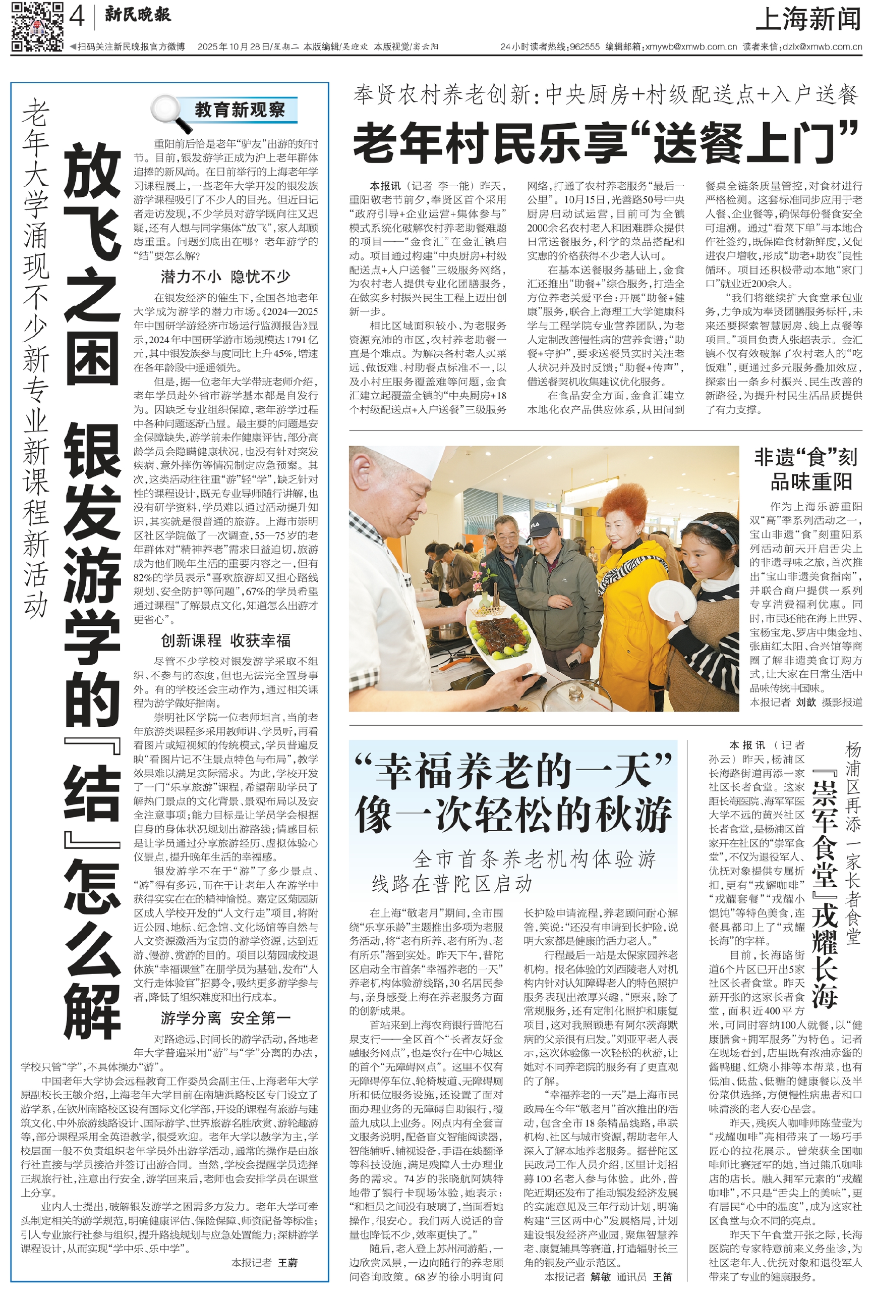 业内人士提出,破解银发游学之困需多方发力。老年大学可牵头制定相关的游学规范,明确健康评估、保险保障、师资配备等标准;引入专业旅行社参与组织,提升路线规划与应急处置能力;深耕游学课程设计,从而实现“学中乐、乐中学”。