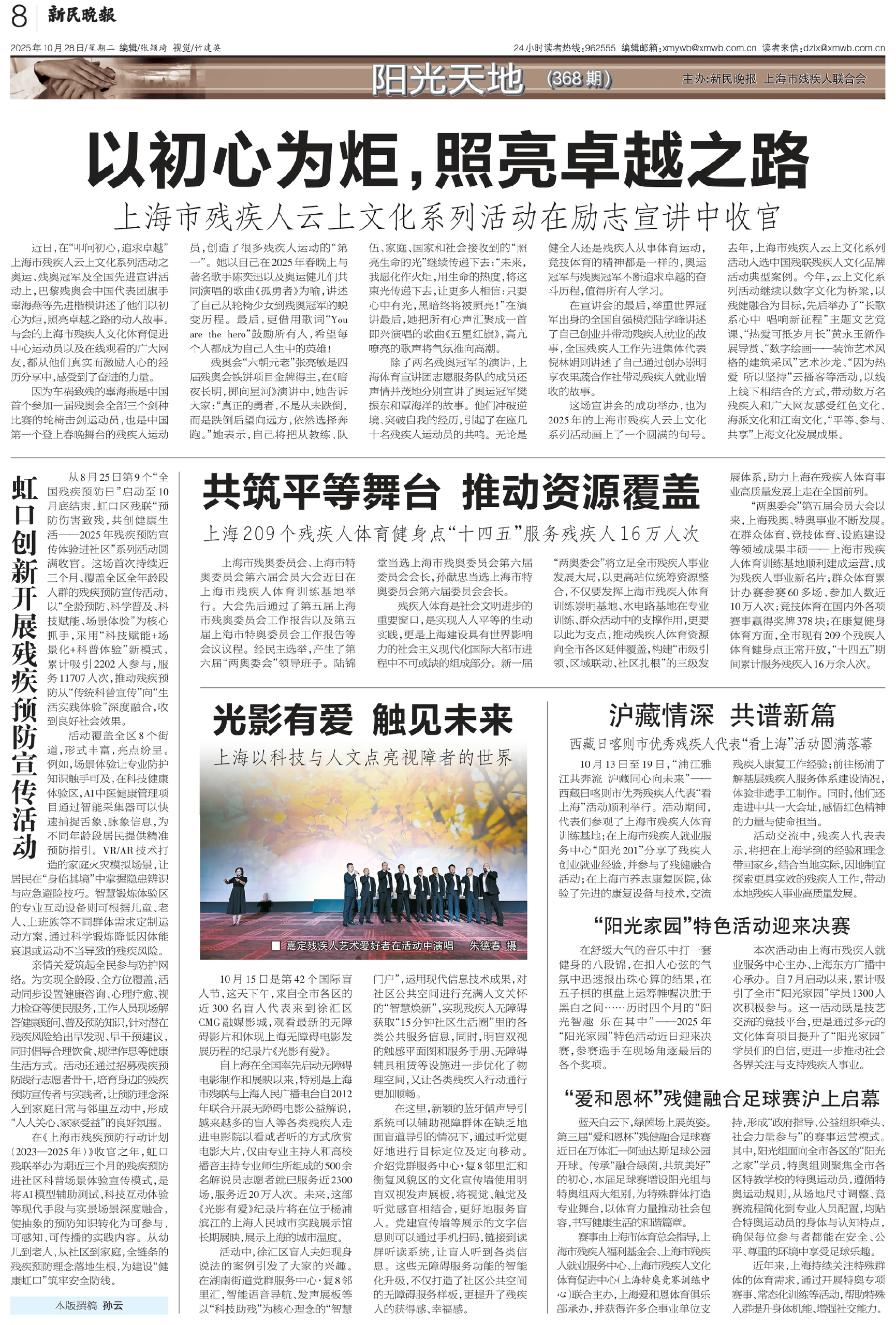 这场宣讲会的成功举办,也为2025年的上海市残疾人云上文化系列活动画上了一个圆满的句号。去年,上海市残疾人云上文化系列活动入选中国残联残疾人文化品牌活动典型案例。今年,云上文化系列活动继续以数字文化为桥梁,以残健融合为目标,先后举办了“长歌系心中 唱响新征程”主题文艺党课、“热爱可抵岁月长”黄永玉新作展导赏、“数字绘画——装饰艺术风格的建筑采风”艺术沙龙、“因为热爱 所以坚持”云播客等活动,以线上线下相结合的方式,带动数万名残疾人和广大网友感受红色文化、海派文化和江南文化,“平等、参与、共享”上海文化发展成果。