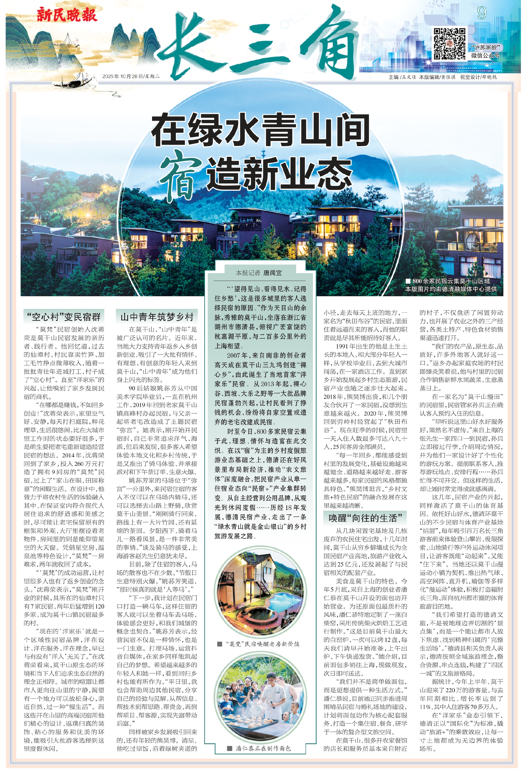 “‘望得见山、看得见水、记得住乡愁’,这是很多城里的客人选择民宿的原因。”作为天目山的余脉,秀雅的莫干山,坐落在浙江省湖州市德清县,俯视广袤富饶的杭嘉湖平原,与二百多公里外的上海相望。