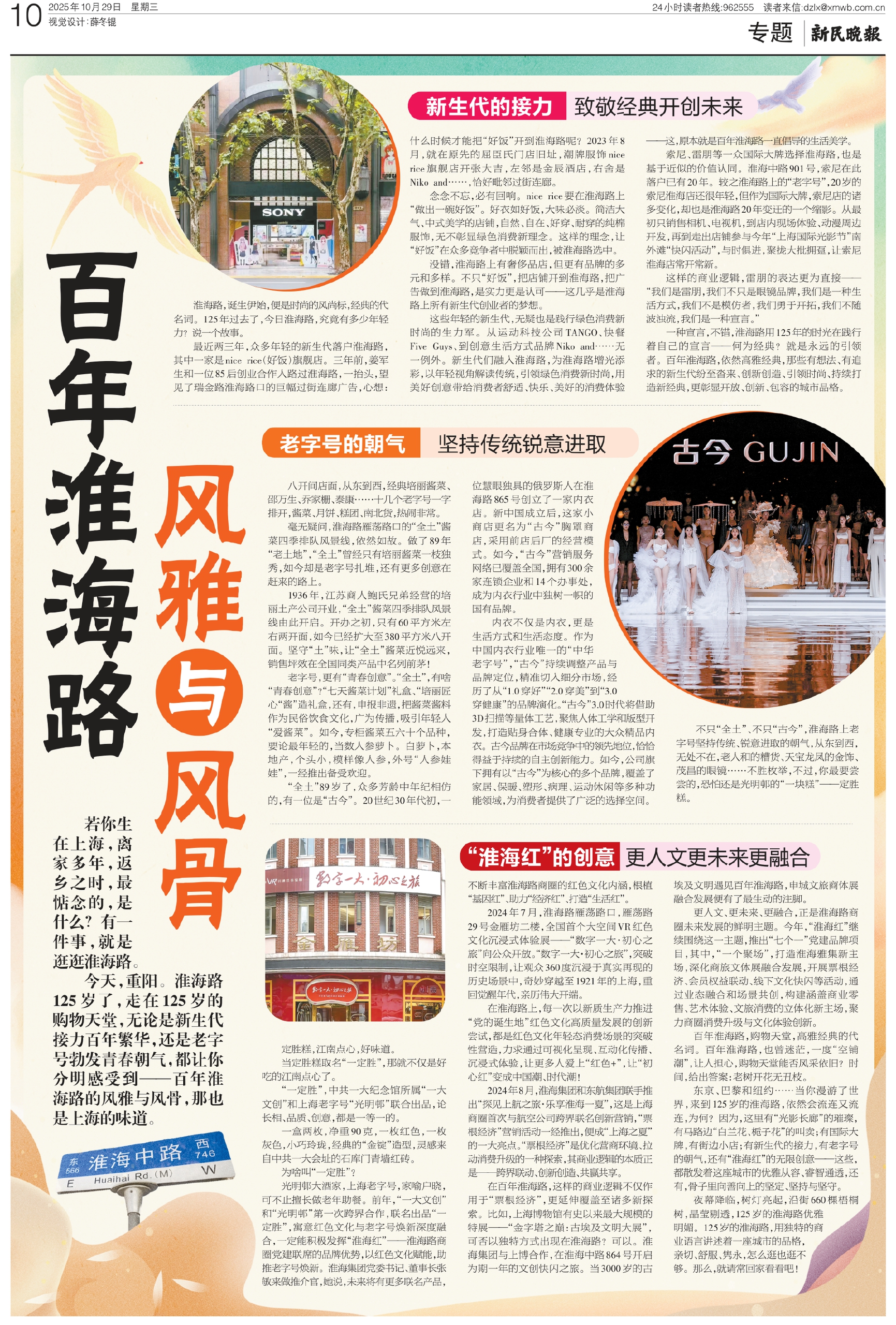 今天,重阳。淮海路125岁了,走在125岁的购物天堂,无论是新生代接力百年繁华,还是老字号勃发青春朝气,都让你分明感受到——百年淮海路的风雅与风骨,那也是上海的味道。