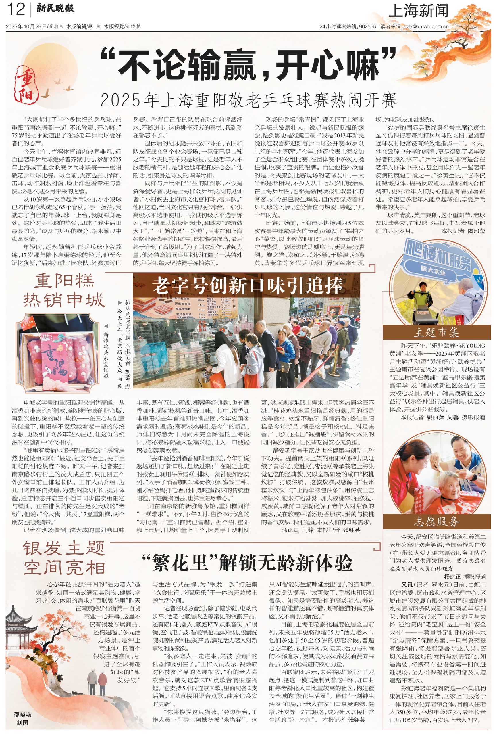 球声清脆,笑声爽朗,这个重阳节,老球友以球会友,在银球飞舞间,书写着属于他们的乒坛岁月。 本报记者 陶邢莹