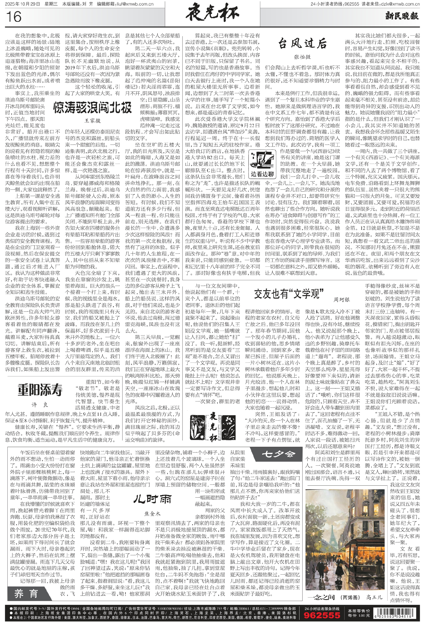 天色完全暗了下来,我坐在靠窗的沙发上,眺望着海面。巨大的浪头一个接着一个打上来,有时候,我的视线里全是海水,那是船头跌进了浪谷,有时候,我的视线里只有天空,我们的船又被抛上了波峰。而我放在茶几上的保温杯,好多次滚到十几米开外的地板上。一位六十多岁的老外,坐在吧台上喝着啤酒,似乎是五楼大厅里最笃定的人。我们八个来自天南地北临时组合的朋友群里,传来的消息是其他七个人全部晕船了,有的人还多次呕吐。