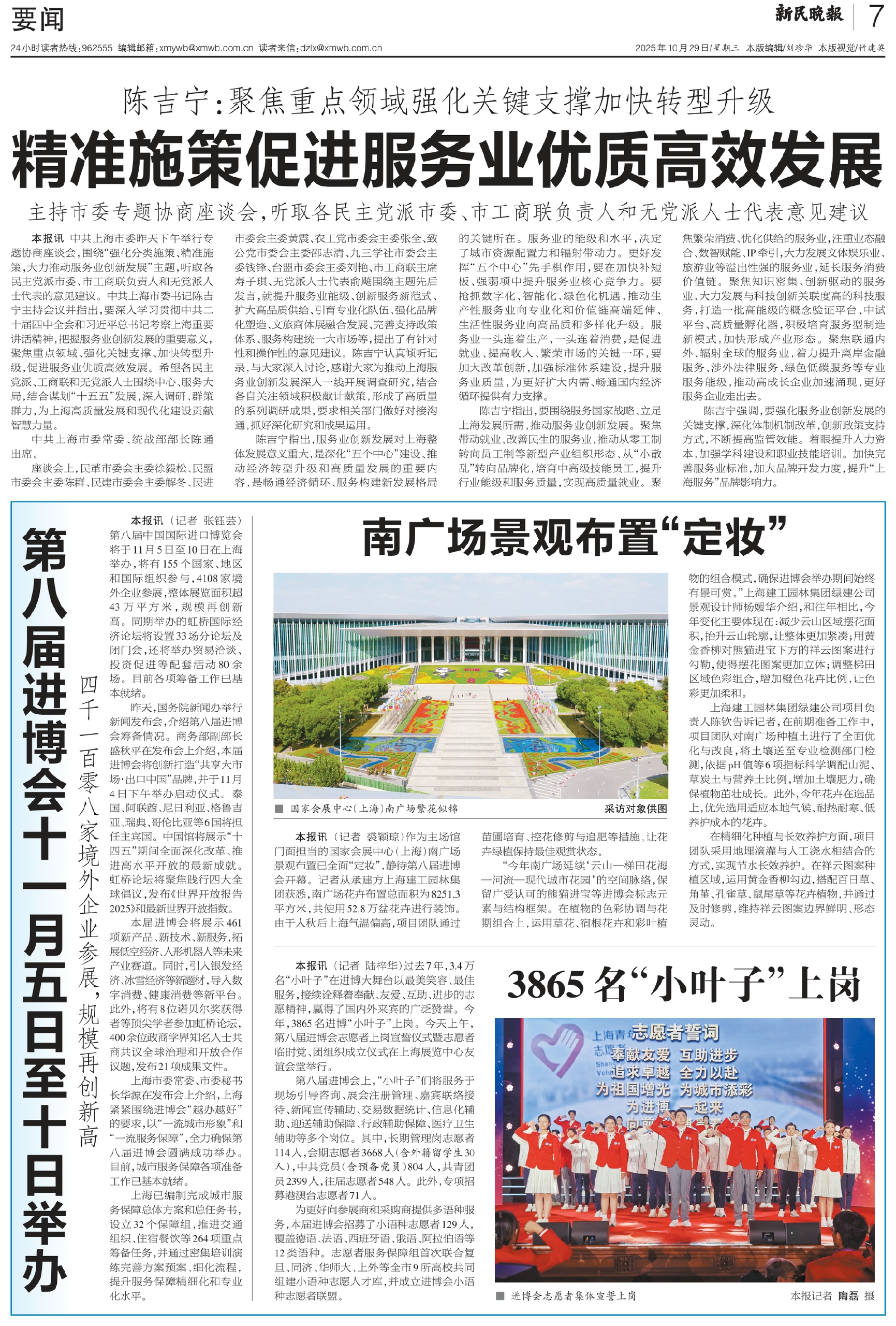 陈吉宁指出,要围绕服务国家战略、立足上海发展所需,推动服务业创新发展。聚焦带动就业、改善民生的服务业,推动从零工制转向员工制等新型产业组织形态、从“小散乱”转向品牌化,培育中高级技能员工,提升行业能级和服务质量,实现高质量就业。聚焦繁荣消费、优化供给的服务业,注重业态融合、数智赋能、IP牵引,大力发展文体娱乐业、旅游业等溢出性强的服务业,延长服务消费价值链。聚焦知识密集、创新驱动的服务业,大力发展与科技创新关联度高的科技服务,打造一批高能级的概念验证平台、中试平台、高质量孵化器,积极培育服务型制造新模式,加快形成产业形态。聚焦联通内外、辐射全球的服务业,着力提升离岸金融服务、涉外法律服务、绿色低碳服务等专业服务能级,推动高成长企业加速涌现,更好服务企业走出去。
