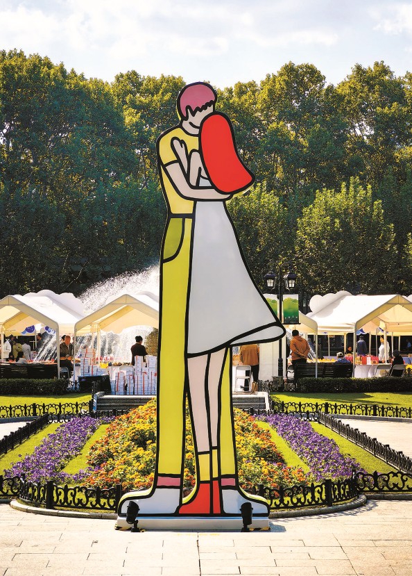 近日,一组以“拥抱”为主题的线性艺术装置在复兴公园亮相。这组作品为“环复兴公园艺术季”而创作,主题温馨,贴近生活。