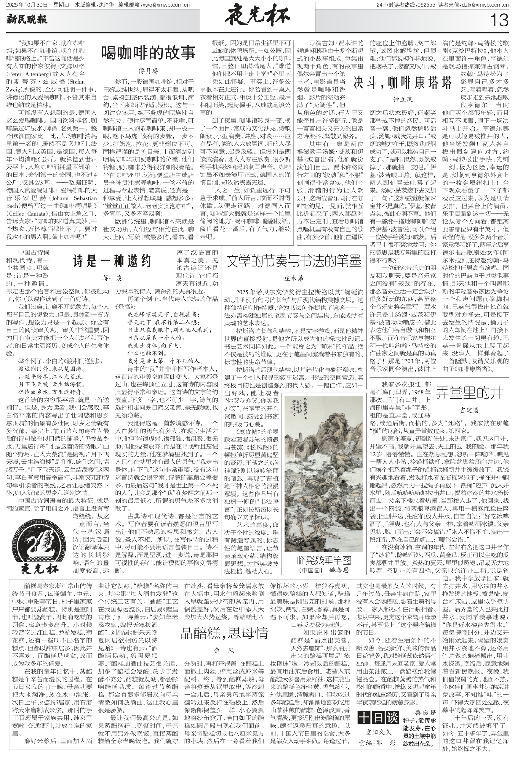 临髡残垂竿图(中国画) 文学的节奏与书法的笔墨 弄堂里的井 喝咖啡的故事 品醅糕,思母情 诗是一种邀约 决斗,咖啡康塔塔