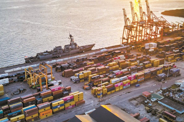 美国在加勒比地区举行军演,美军导弹驱逐舰“格雷夫利”号停靠特立尼达和多巴哥首都西班牙港