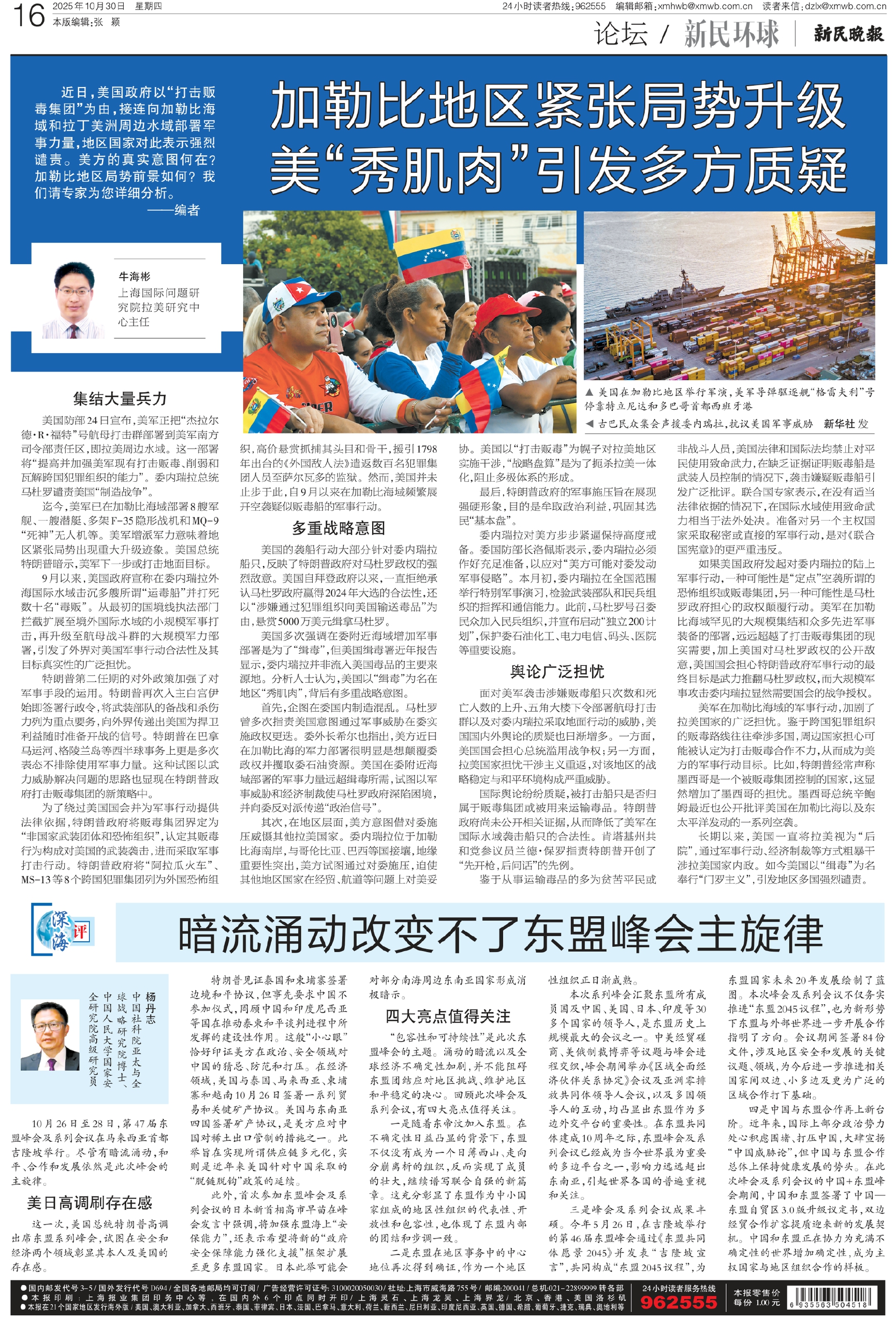 近日,美国政府以“打击贩毒集团”为由,接连向加勒比海域和拉丁美洲周边水域部署军事力量,地区国家对此表示强烈谴责。美方的真实意图何在?加勒比地区局势前景如何?我们请专家为您详细分析。——编者