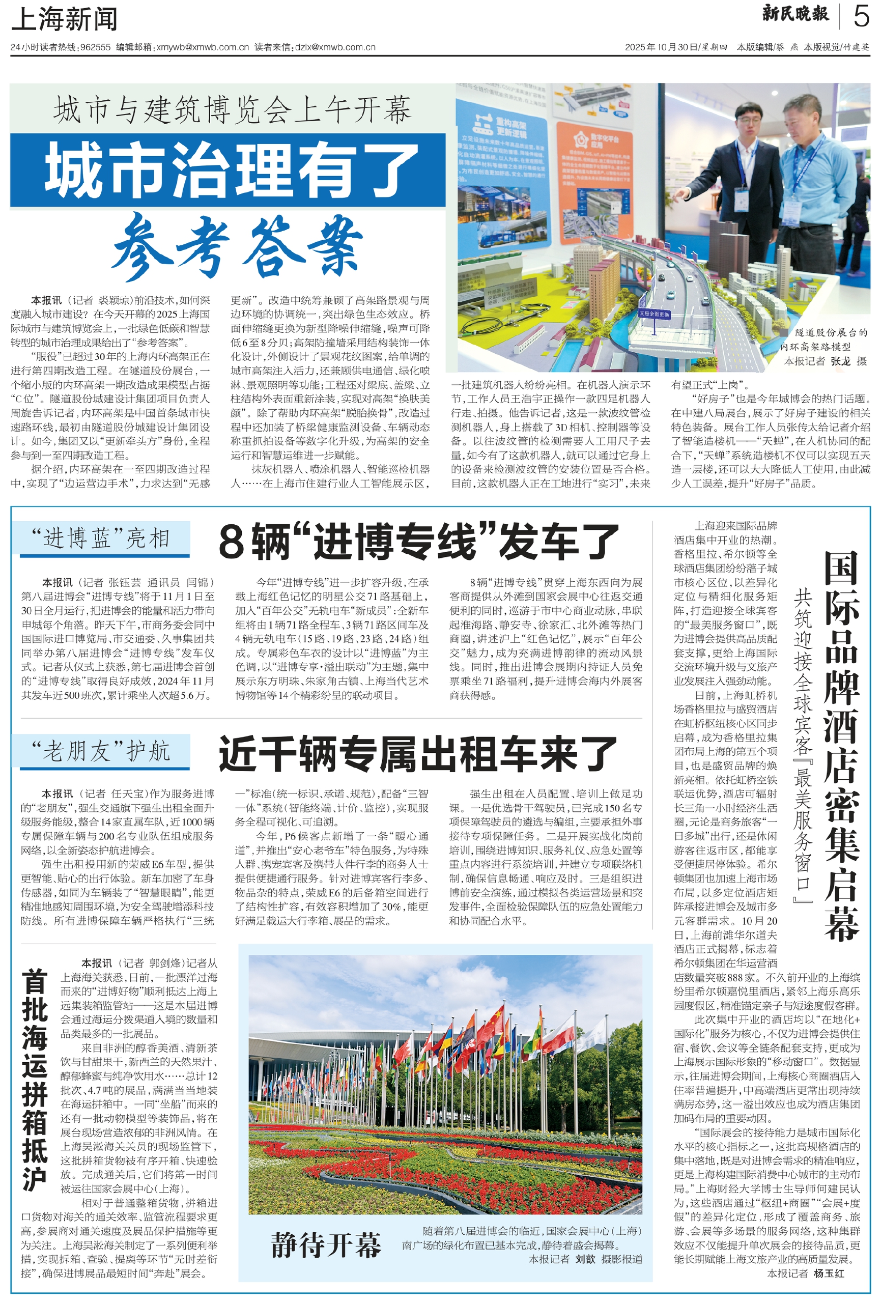 本报讯(记者 裘颖琼)前沿技术,如何深度融入城市建设?在今天开幕的2025上海国际城市与建筑博览会上,一批绿色低碳和智慧转型的城市治理成果给出了“参考答案”。