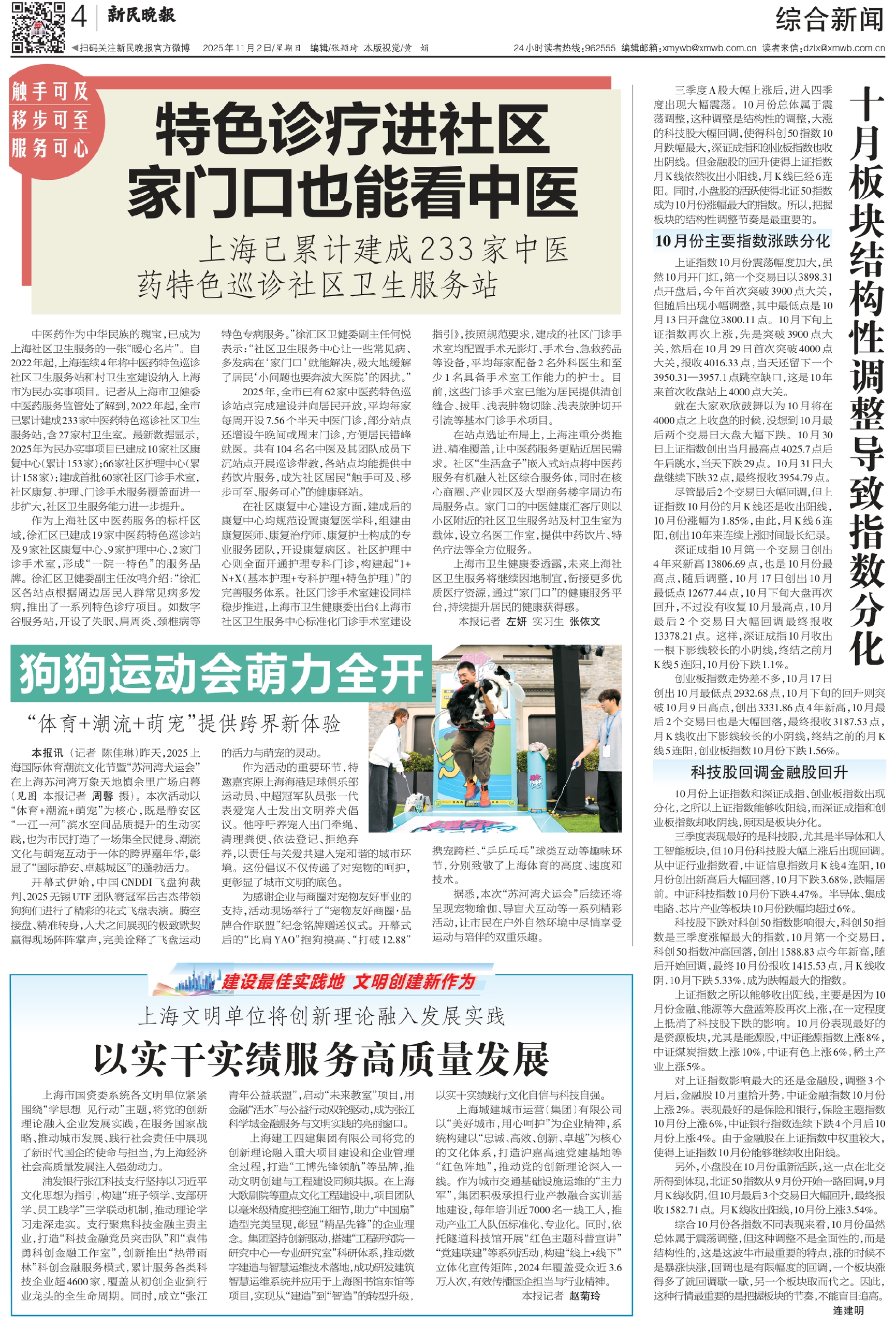中医药作为中华民族的瑰宝,已成为上海社区卫生服务的一张“暖心名片”。自2022年起,上海连续4年将中医药特色巡诊社区卫生服务站和村卫生室建设纳入上海市为民办实事项目。记者从上海市卫健委中医药服务监管处了解到,2022年起,全市已累计建成233家中医药特色巡诊社区卫生服务站,含27家村卫生室。最新数据显示,2025年为民办实事项目已建成10家社区康复中心(累计153家);66家社区护理中心(累计158家);建成首批60家社区门诊手术室,社区康复、护理、门诊手术服务覆盖面进一步扩大,社区卫生服务能力进一步提升。