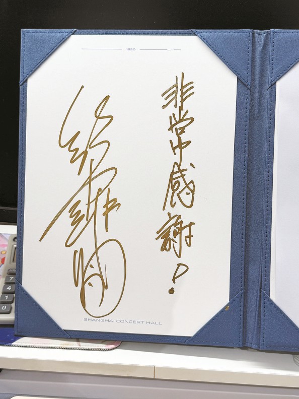 铃木雅明用中文手书“非常感谢”感谢上海音乐厅