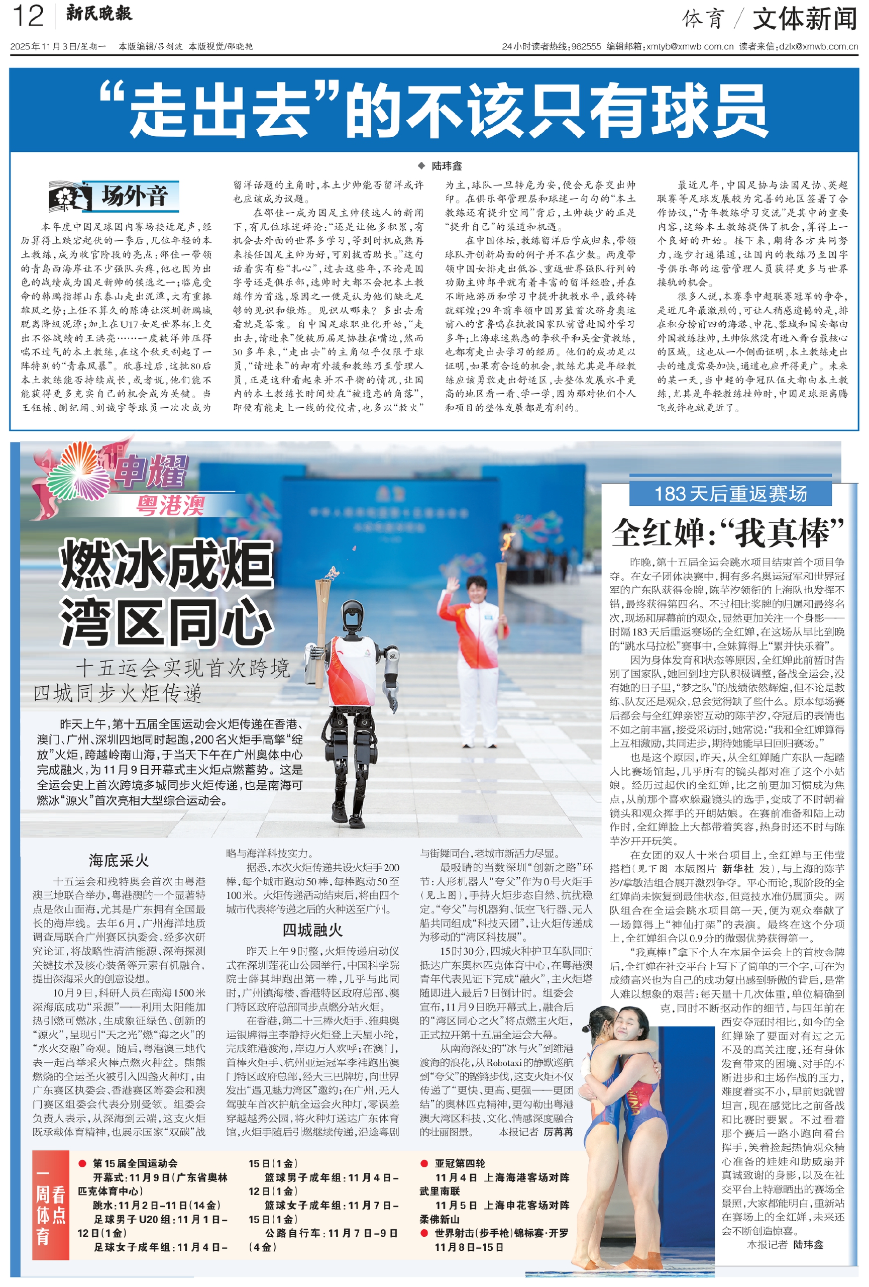 很多人说,本赛季中超联赛冠军的争夺,是近几年最激烈的,可让人稍感遗憾的是,排在积分榜前四的海港、申花、蓉城和国安都由外国教练挂帅,土帅依然没有进入舞台最核心的区域。这也从一个侧面证明,本土教练走出去的速度需要加快,通道也应开得更广。未来的某一天,当中超的争冠队伍大都由本土教练,尤其是年轻教练挂帅时,中国足球距离腾飞或许也就更近了。