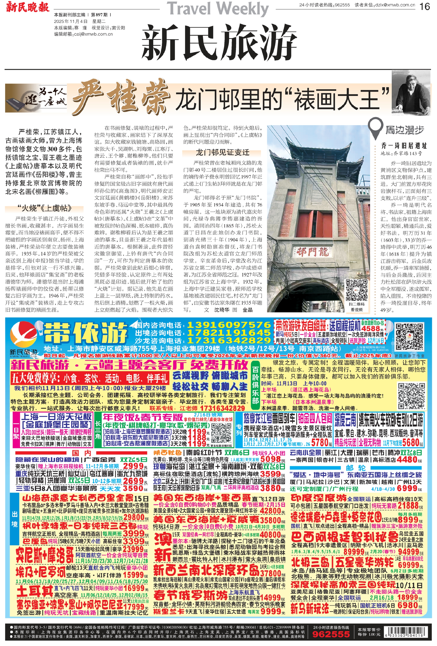 严桂荣,江苏镇江人,古画裱画大师,曾为上海博物馆修复文物300多件,包括镇馆之宝、晋王羲之墨迹《上虞帖》唐摹本以及明代宫廷画作《岳阳楼》等,曾主持修复北京故宫博物院的北宋名画《柳雁图》等。