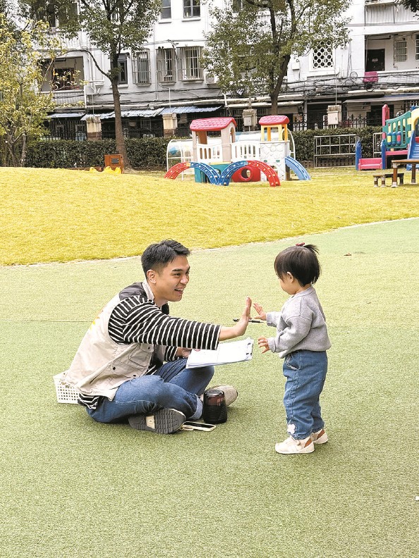 普陀区早教中心除了邱毅君外,还有9名男教师,这样的比例在上海已属前列。“团队性别多元化,才能更好地服务多元化家庭。”普陀区早期教育中心副主任黄琼说:“邱毅君的出现提醒我们,温柔、耐心、细致,并非女性专利;而父亲的角色,也不应仅限于‘赚钱养家’或‘逗孩子玩’。男性进入早教一线,能为孩子提供更丰富的互动模式和情感体验。”