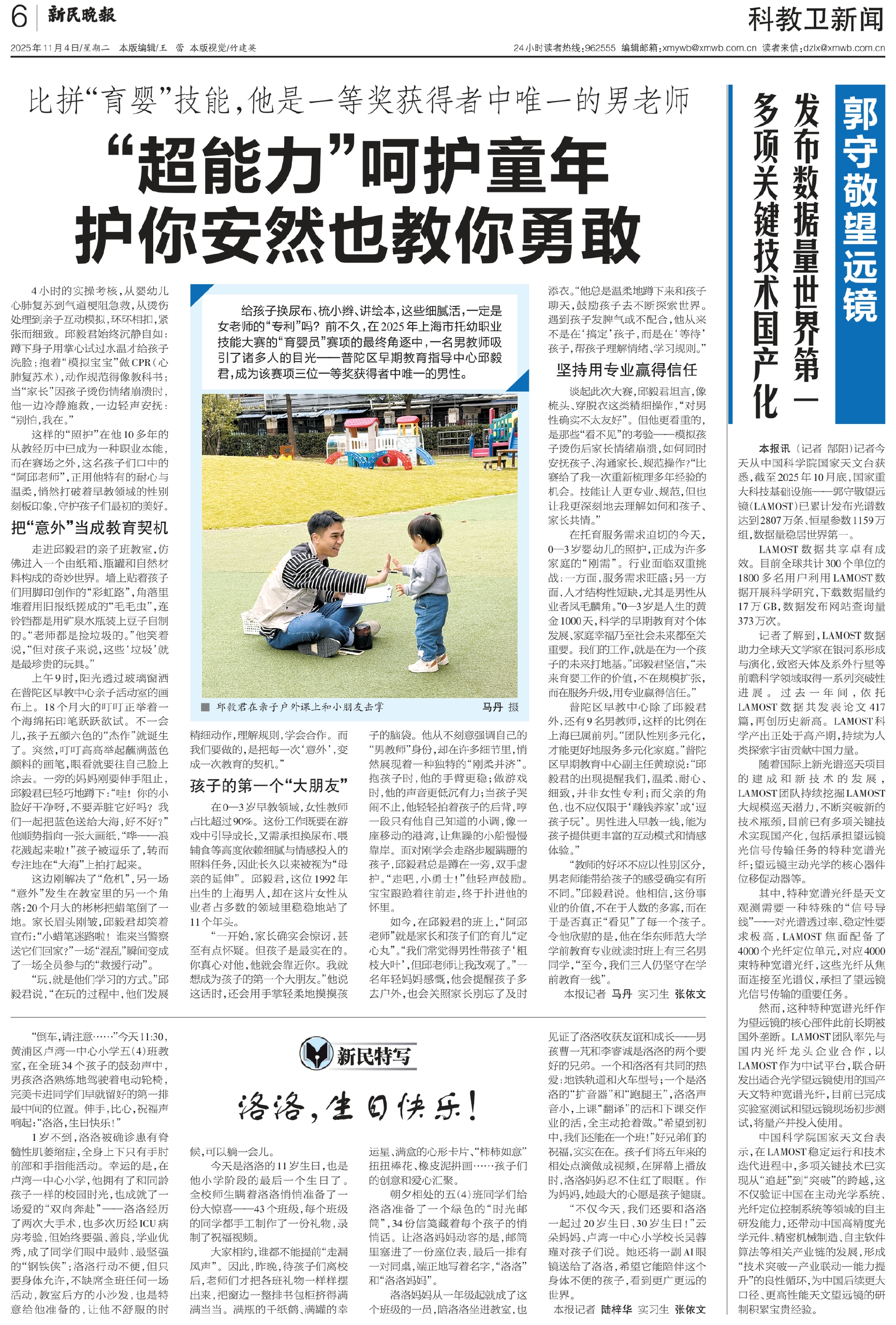 这样的“照护”在他10多年的从教经历中已成为一种职业本能,而在赛场之外,这名孩子们口中的“阿邱老师”,正用他特有的耐心与温柔,悄然打破着早教领域的性别刻板印象,守护孩子们最初的美好。