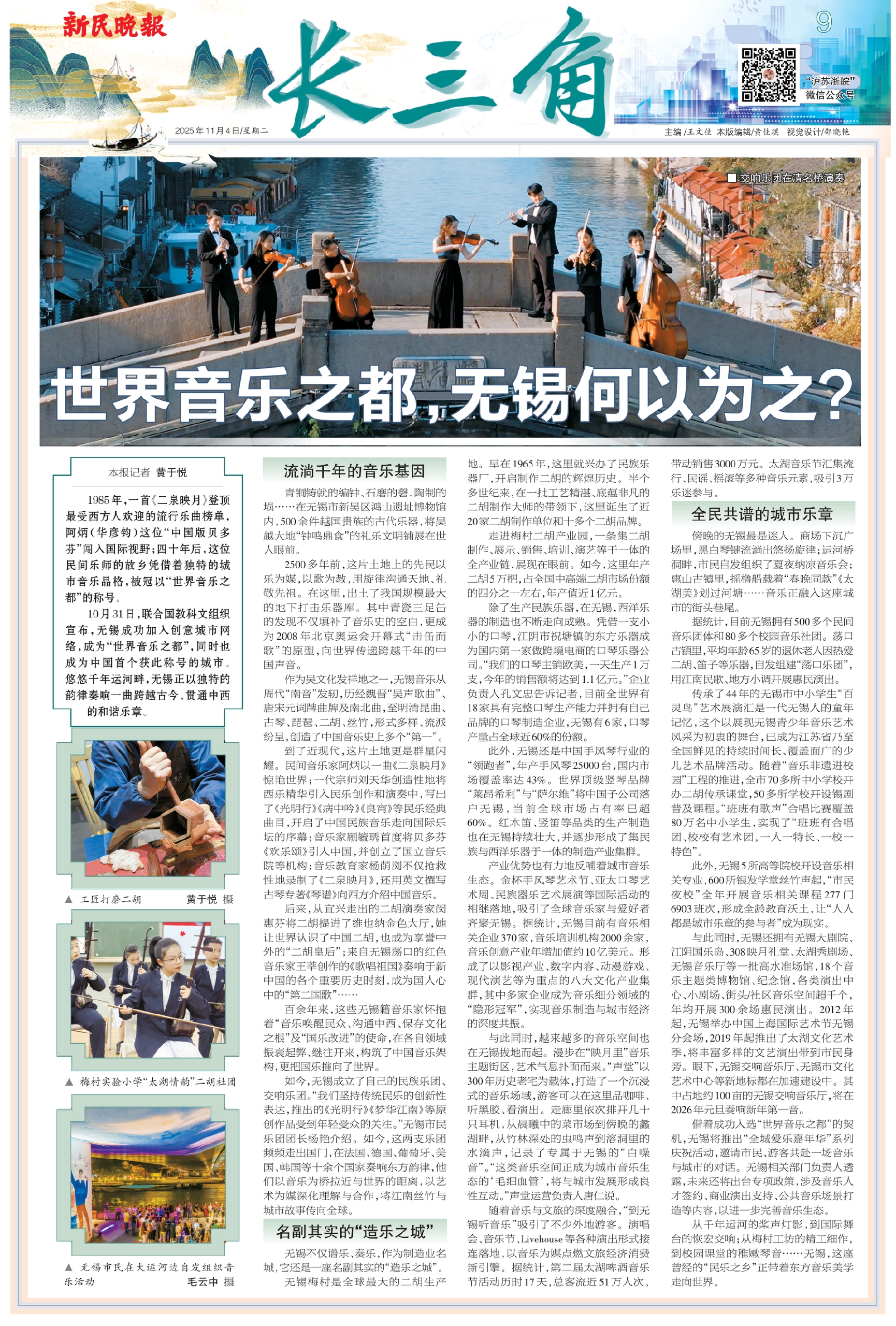从千年运河的桨声灯影,到国际舞台的恢宏交响;从梅村工坊的精工细作,到校园课堂的稚嫩琴音……无锡,这座曾经的“民乐之乡”正带着东方音乐美学走向世界。