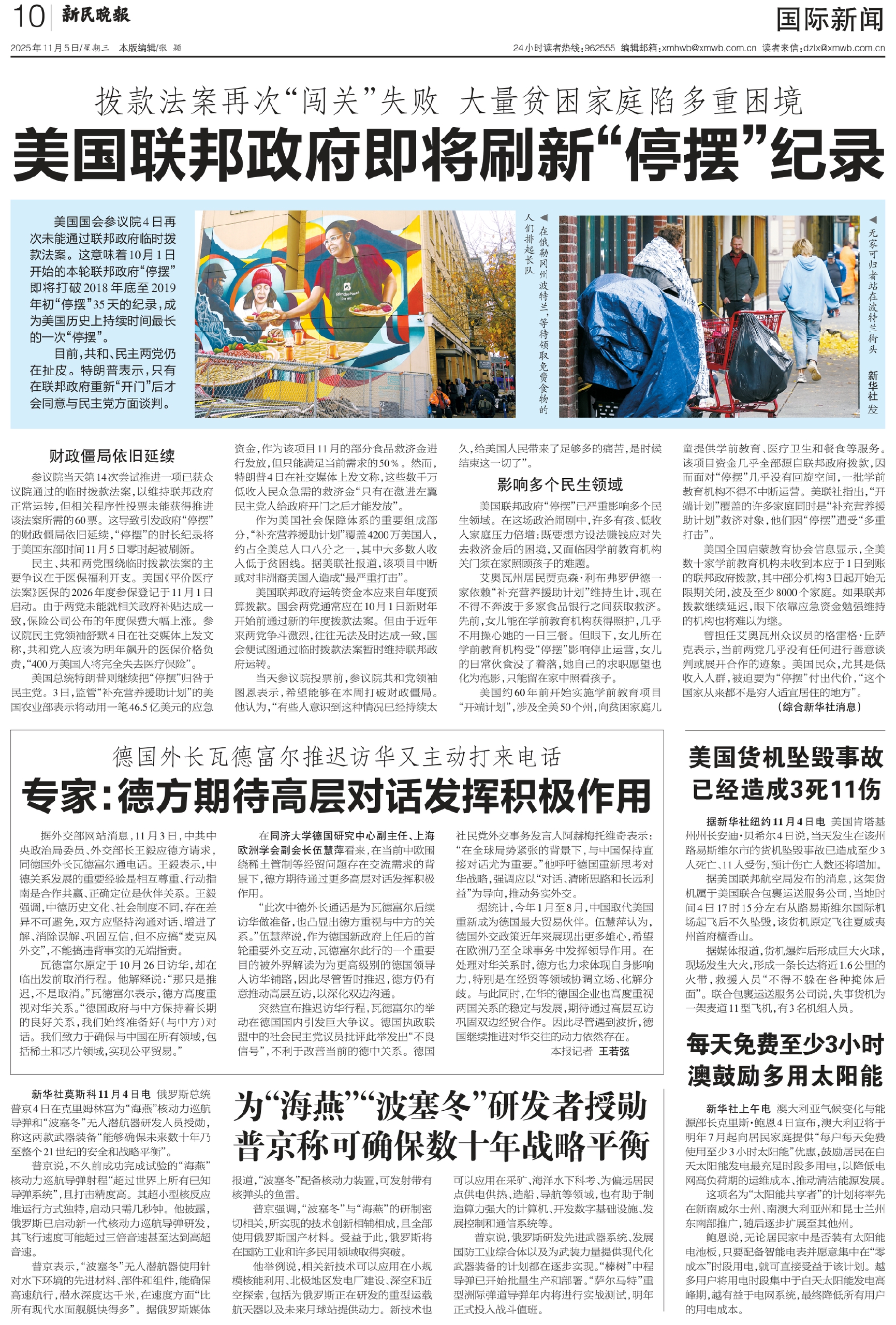 美国总统特朗普则继续把“停摆”归咎于民主党。3日,监管“补充营养援助计划”的美国农业部表示将动用一笔46.5亿美元的应急资金,作为该项目11月的部分食品救济金进行发放,但只能满足当前需求的50%。然而,特朗普4日在社交媒体上发文称,这些数千万低收入民众急需的救济金“只有在激进左翼民主党人给政府开门之后才能发放”。