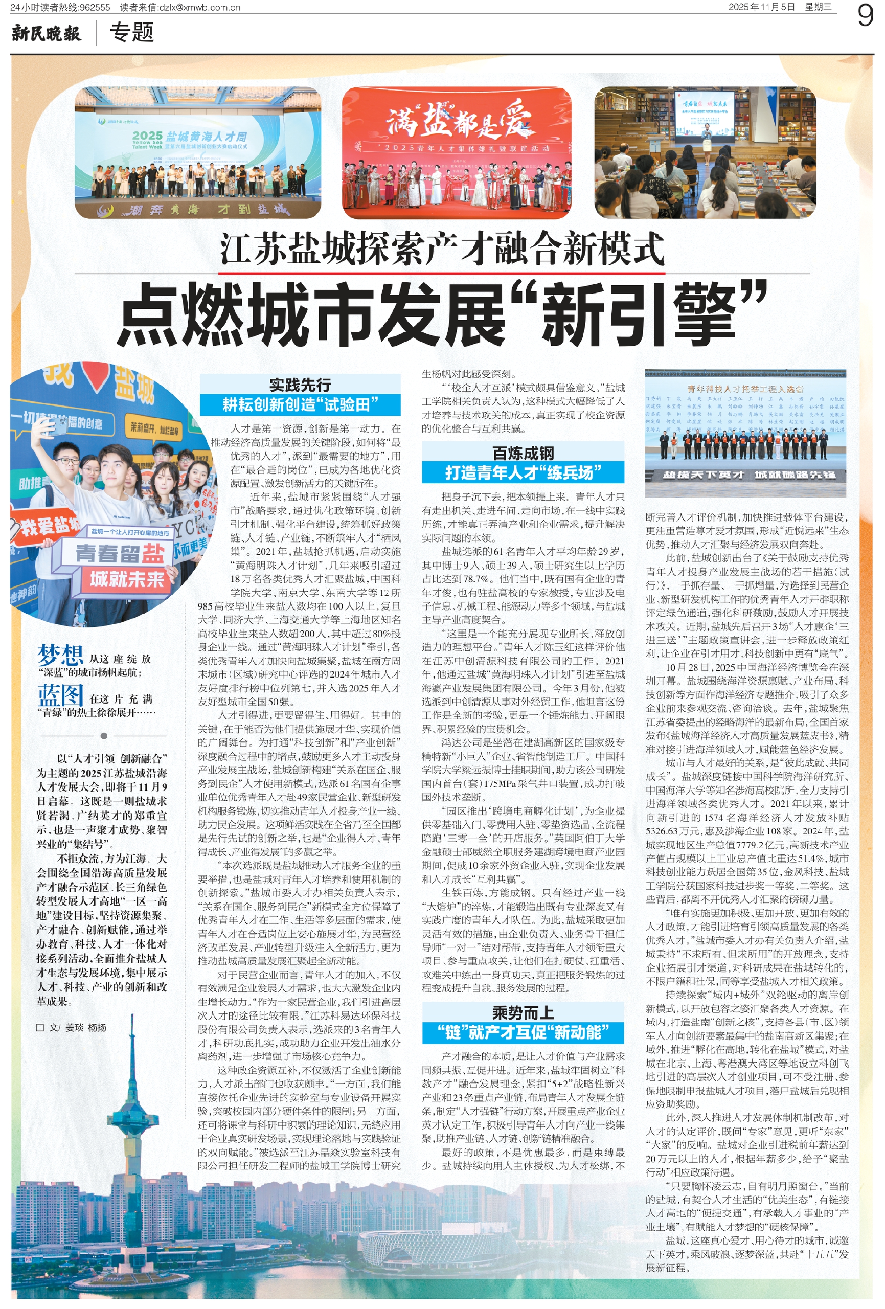 “本次选派既是盐城推动人才服务企业的重要举措,也是盐城对青年人才培养和使用机制的创新探索。”盐城市委人才办相关负责人表示,“关系在国企、服务到民企”新模式全方位保障了优秀青年人才在工作、生活等多层面的需求,使青年人才在合适岗位上安心施展才华,为民营经济改革发展、产业转型升级注入全新活力,更为推动盐城高质量发展汇聚起全新动能。