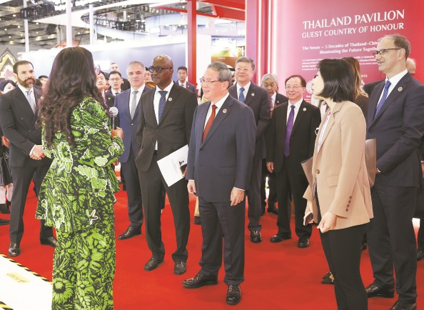 开幕式前,李强参观了企业展。开幕式后,李强同与会外国领导人共同巡馆。
