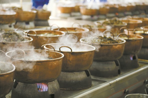 上海岳阳医院药学部副主任药师朱晓春介绍,在膏方的制作加工方面,岳阳医院严格按照《中国药典》和《炮制规范》的要求,从优选用组成膏方的饮片、细料、胶类、糖类和辅料等各味药材。膏方制作场地和设施设备都达到并部分超过国家相关中药加工的规范要求,传承了精制铜锅等道地用具和方法。在严格的全程生产制度管理下,由一批资深制药匠师主持,采用传统制作工艺,按照配方、浸药、提取、浓缩、收膏、分装、晾膏等七个步骤,一方一锅定制加工,确保每料膏方的上乘品质。