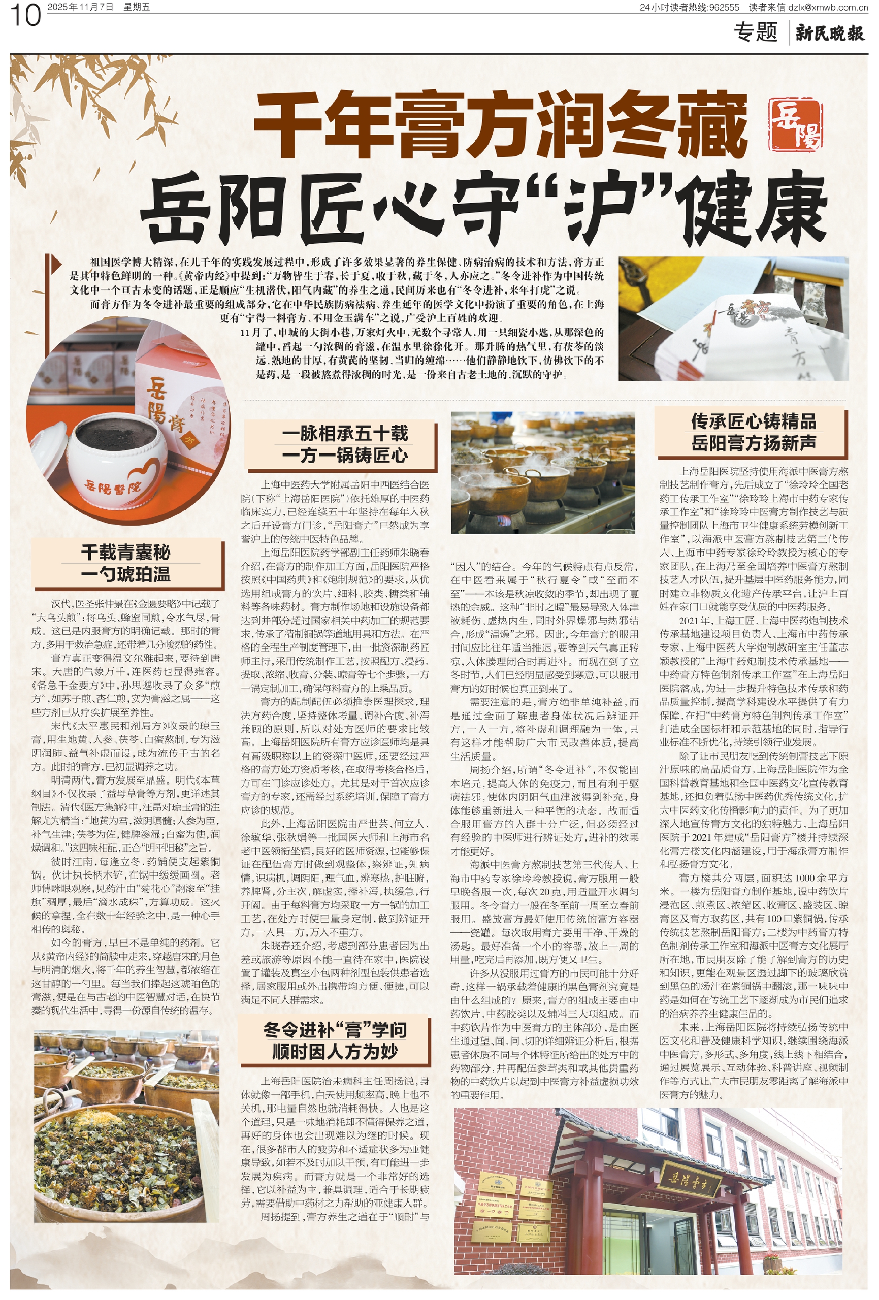 上海中医药大学附属岳阳中西医结合医院(下称“上海岳阳医院”)依托雄厚的中医药临床实力,已经连续五十年坚持在每年入秋之后开设膏方门诊,“岳阳膏方”已然成为享誉沪上的传统中医特色品牌。