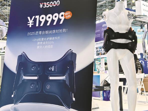 第八届进博会创新孵化专区展示的护腰黑科技腰带