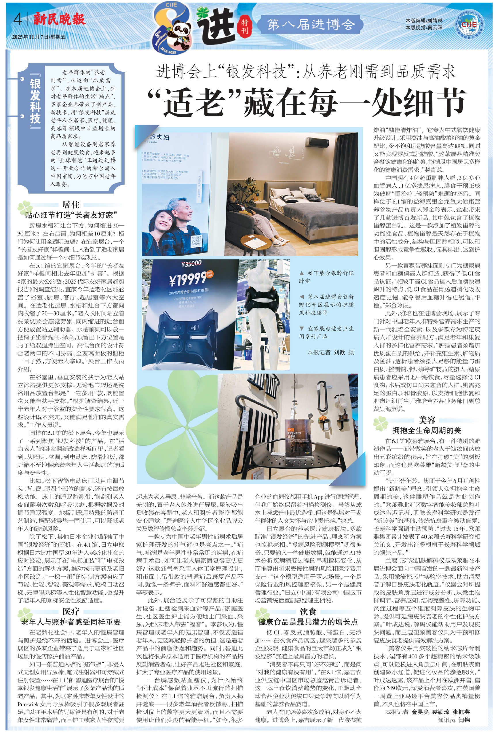 从智能设备到居家养老再到健康饮食,越来越多的“全球智慧”正通过进博这一开放合作的舞台涌入中国市场,为亿万中国老年人服务。