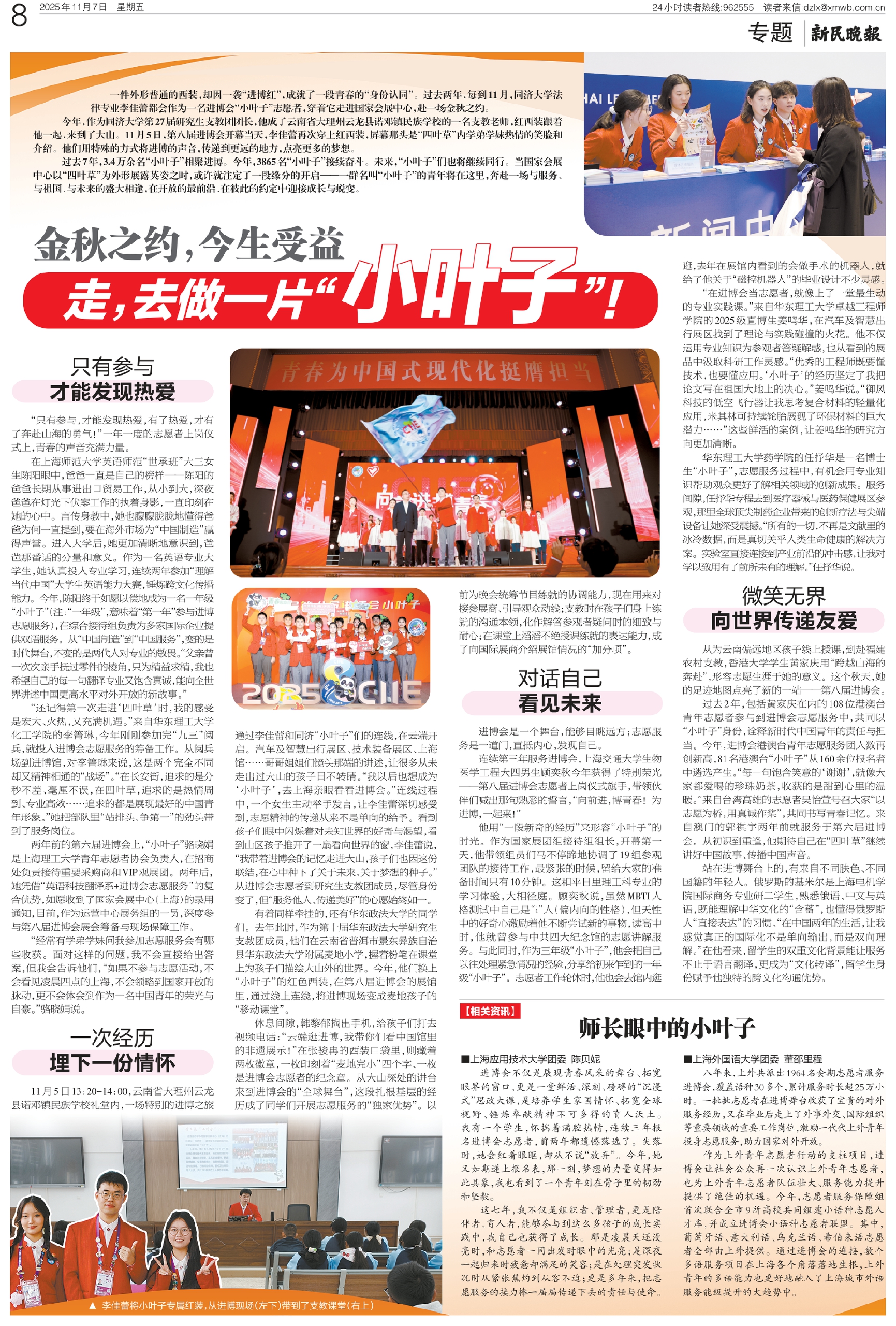 进博会是一个舞台,能够目眺远方;志愿服务是一道门,直抵内心,发现自己。