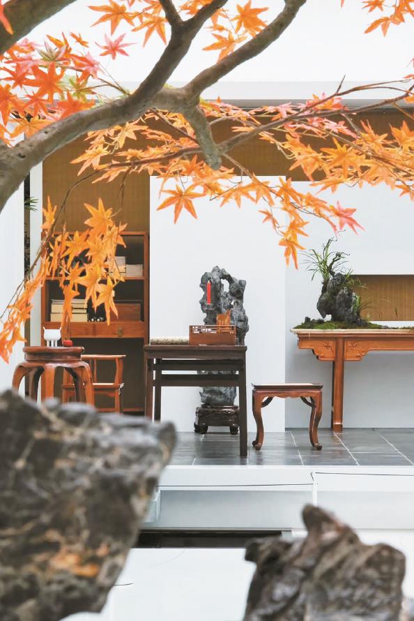 园林石供,木影清趣 东馆屋顶江南园林,东园是一个集演出和会客功能于一体的开放式庭院,西园则展现了典型的江南小桥流水、亭台楼阁的景致。在屋顶园林对外开放之际,上海博物馆同步推出了“木石双清:江南石供与海派盆景展”。展览位于屋顶花园的东园、中园以及江南造物馆中庭,遍设奇石佳木,令观众流连忘返。