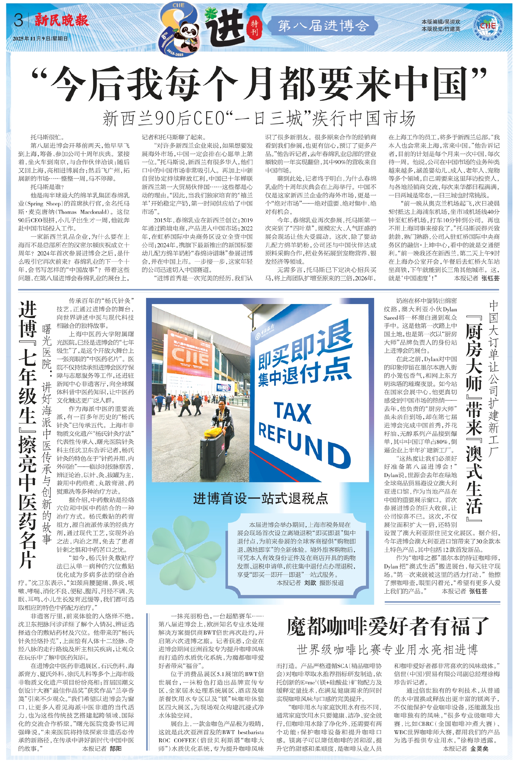 一家新西兰乳品企业,为什么要在上海而不是总部所在的汉密尔顿庆祝成立十周年?2024年首次参展进博会之后,是什么吸引它再次前来?春绵乳业的下一个十年,会书写怎样的“中国故事”?带着这些问题,在第八届进博会春绵乳业的展台上,记者和托马斯聊了起来。