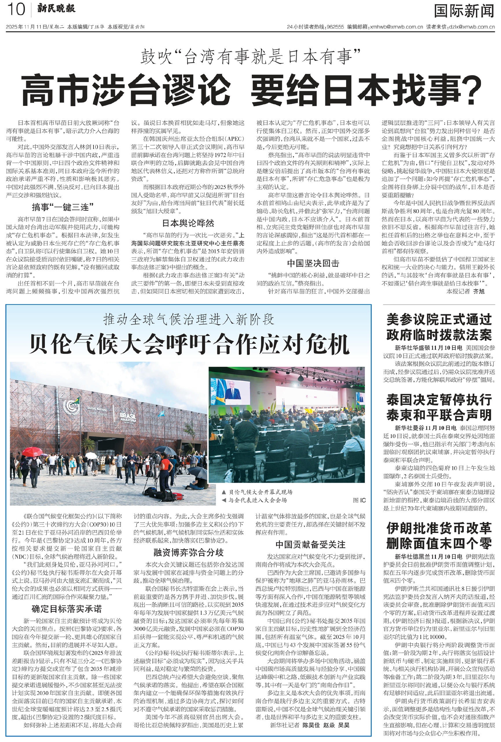 高市早苗7日在国会答问时宣称,如果中国大陆对台湾出动军舰并使用武力,可能构成“存亡危机事态”。根据日本法律,如发生被认定为威胁日本生死存亡的“存亡危机事态”,自卫队将可以行使集体自卫权。她10日在众议院接受质询时依旧嘴硬,称7日的相关言论是依照政府的既有见解,“没有撤回或取消的打算”。