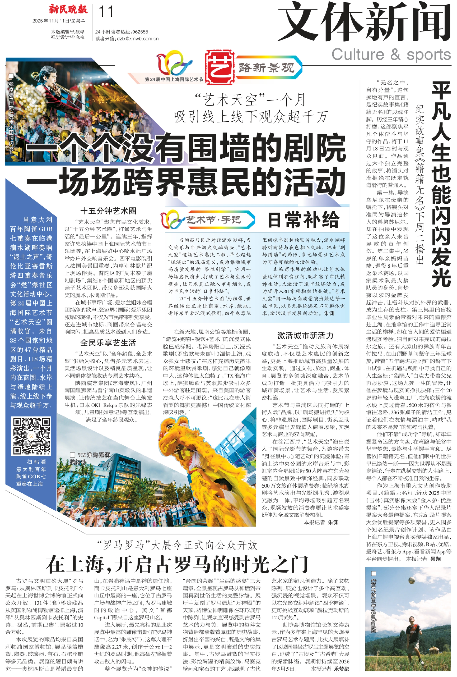 当意大利百年陶笛GOB七重奏在临港滴水湖畔奏响“泥土之声”,哥伦比亚塞雷斯塔四重奏音乐会“燃”爆社区文化活动中心,第24届中国上海国际艺术节“艺术天空”圆满收官。来自38个国家和地区的47台精品剧目、118场精彩演出,一个月内在商圈、水岸与绿地陆续上演,线上线下参与观众超千万。