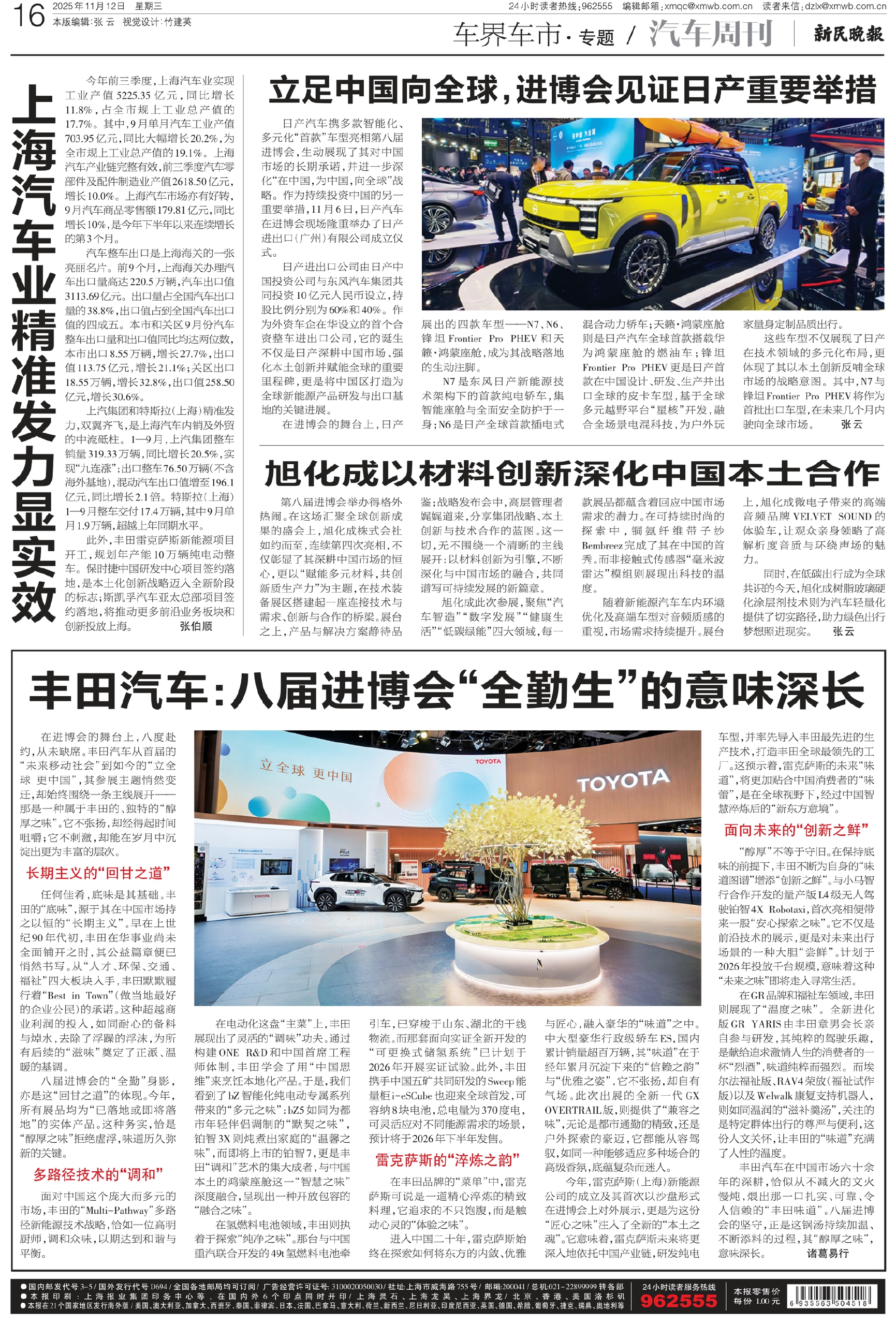 此外,丰田雷克萨斯新能源项目开工,规划年产能10万辆纯电动整车。保时捷中国研发中心项目签约落地,是本土化创新战略迈入全新阶段的标志;斯凯孚汽车亚太总部项目签约落地,将推动更多前沿业务板块和创新投放上海。