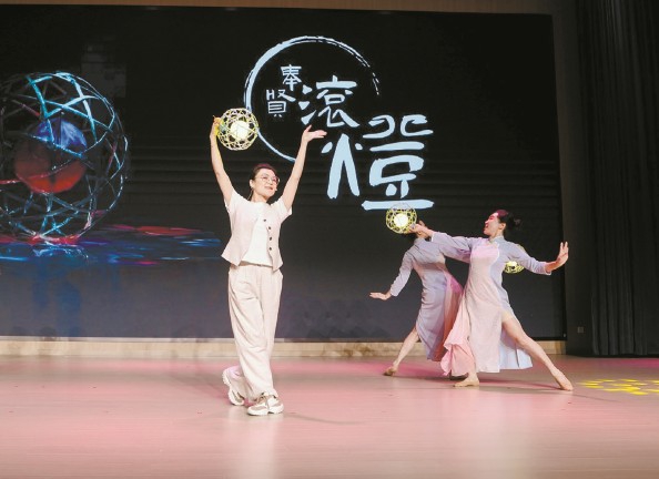 胡莎莎(左)表演滚灯舞蹈