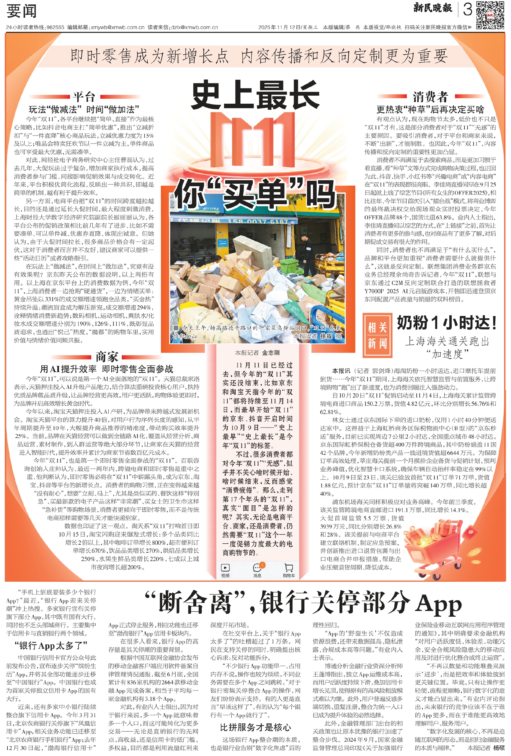 有观点认为,现在购物节太多,低价也不只是“双11”才有,这是部分消费者对于“双11”“无感”的主要原因。要吸引消费者,对于平台和商家来说,不断“出新”,才能制胜。也因此,今年“双11”,内容传播和反向定制的重要性更加凸显。