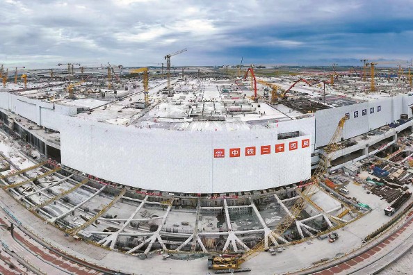 施工中,建设团队创新应用智能温控系统、自动喷淋养护装置、机器人自动整平、机器人自动焊接等一系列先进工艺工法及智能化工装设备,为工程安全质量提供了硬核保障。截至目前,站房地上工程累计浇筑混凝土约52万立方米,使用钢筋约18万吨、钢结构约1.3万吨。
