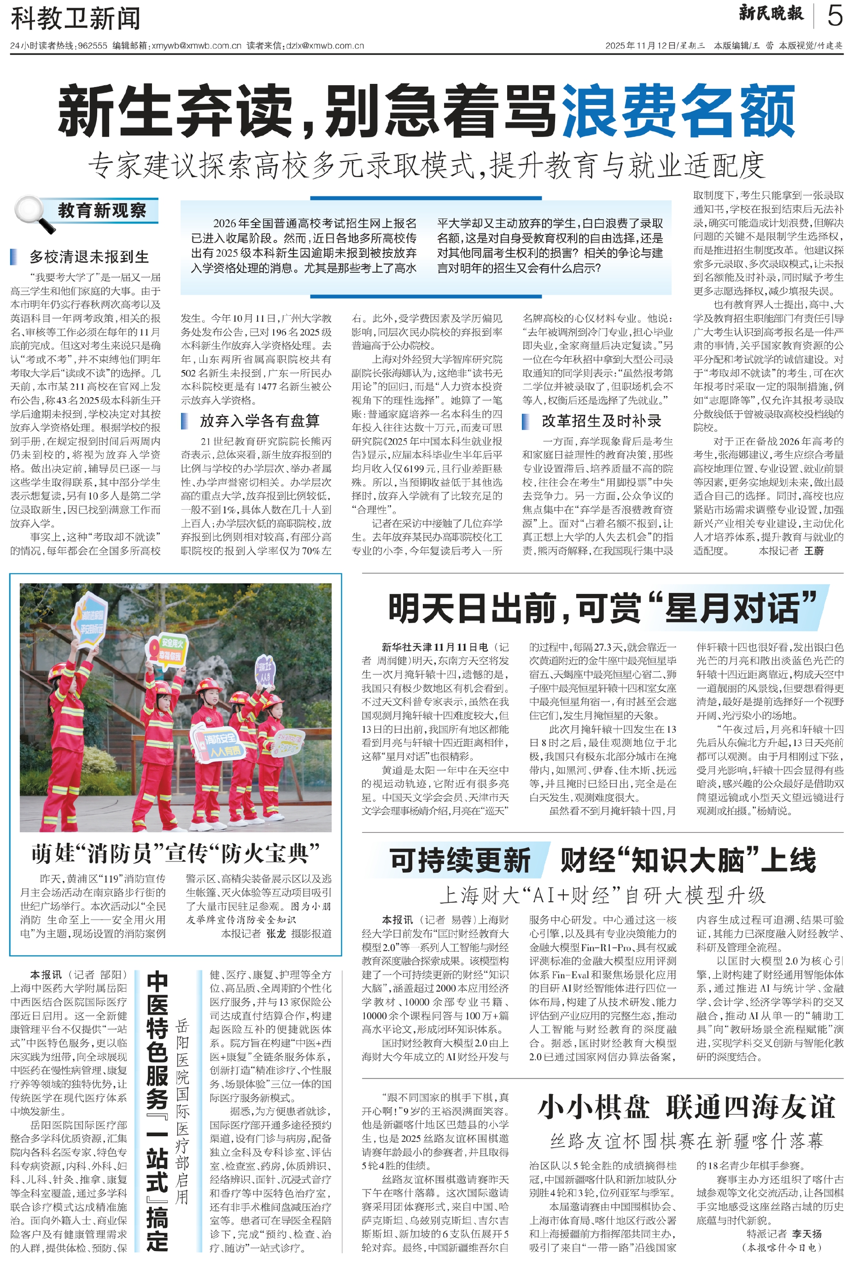 一方面,弃学现象背后是考生和家庭日益理性的教育决策,那些专业设置滞后、培养质量不高的院校,往往会在考生“用脚投票”中失去竞争力。另一方面,公众争议的焦点集中在“弃学是否浪费教育资源”上。面对“占着名额不报到,让真正想上大学的人失去机会”的指责,熊丙奇解释,在我国现行集中录取制度下,考生只能拿到一张录取通知书,学校在报到结束后无法补录,确实可能造成计划浪费,但解决问题的关键不是限制学生选择权,而是推进招生制度改革。他建议探索多元录取、多次录取模式,让未报到名额能及时补录,同时赋予考生更多志愿选择权,减少填报失误。
