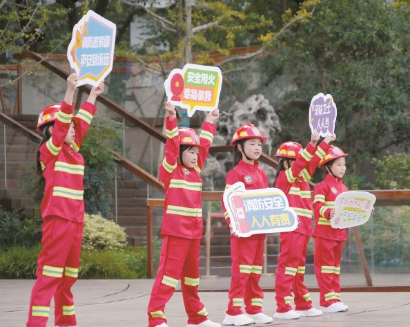 昨天,黄浦区“119”消防宣传月主会场活动在南京路步行街的世纪广场举行。本次活动以“全民消防 生命至上——安全用火用电”为主题,现场设置的消防案例警示区、高精尖装备展示区以及逃生帐篷、灭火体验等互动项目吸引了大量市民驻足参观。图为小朋友举牌宣传消防安全知识 本报记者 张龙 摄影报道