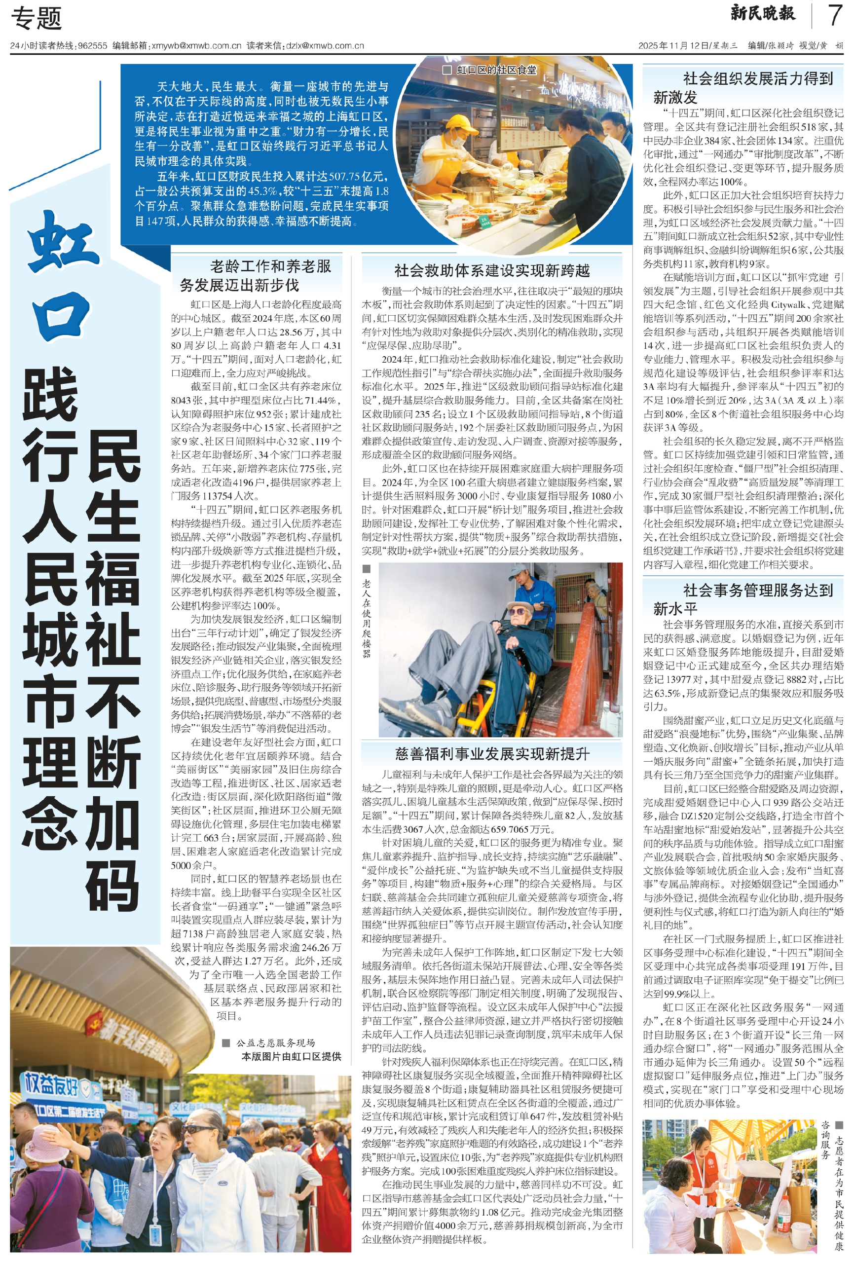 衡量一个城市的社会治理水平,往往取决于“最短的那块木板”,而社会救助体系则起到了决定性的因素。“十四五”期间,虹口区切实保障困难群众基本生活,及时发现困难群众并有针对性地为救助对象提供分层次、类别化的精准救助,实现“应保尽保、应助尽助”。