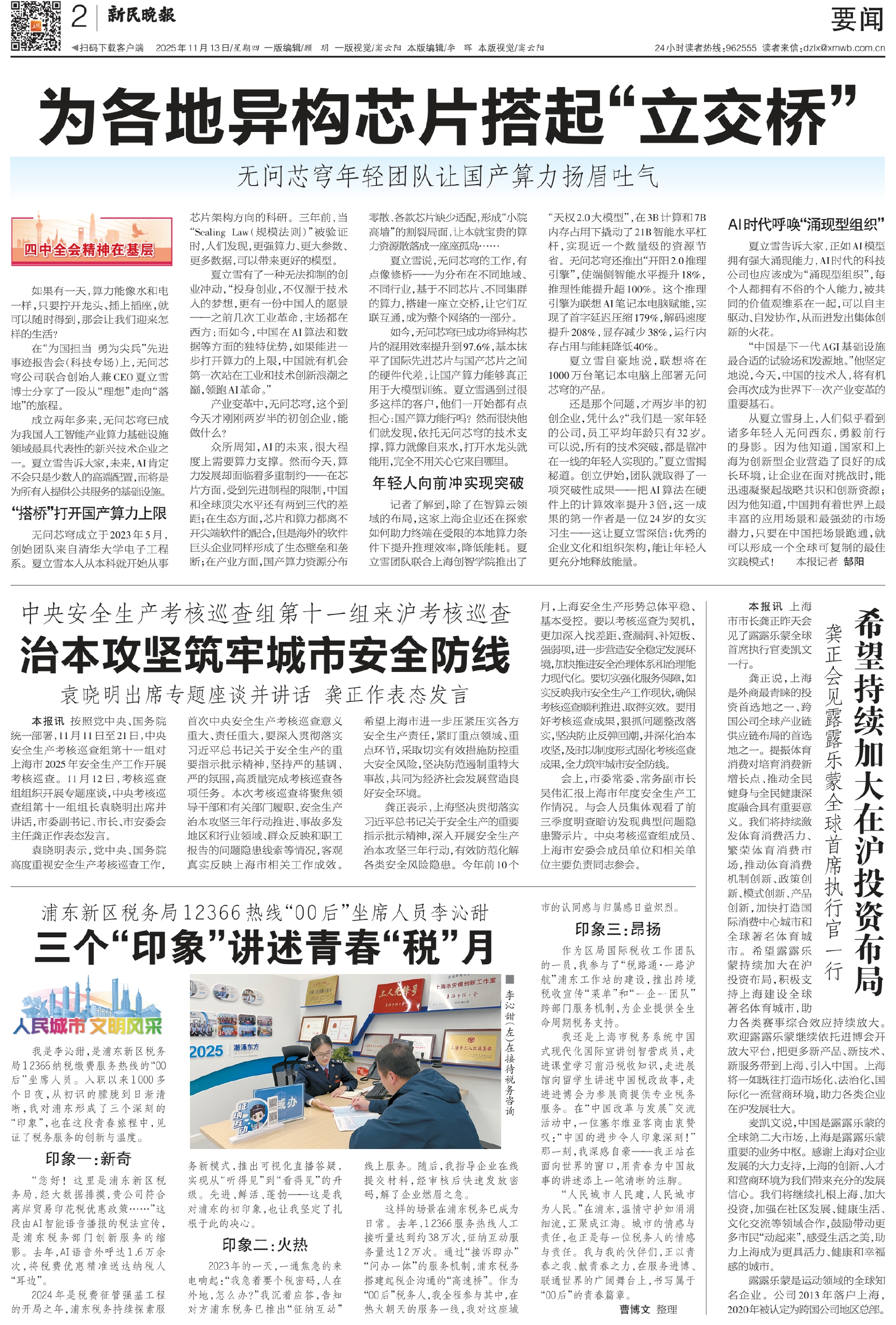 从夏立雪身上,人们似乎看到诸多年轻人无问西东,勇毅前行的身影。因为他知道,国家和上海为创新型企业营造了良好的成长环境,让企业在面对挑战时,能迅速凝聚起战略共识和创新资源;因为他知道,中国拥有着世界上最丰富的应用场景和最强劲的市场潜力,只要在中国把场景跑通,就可以形成一个全球可复制的最佳实践模式!