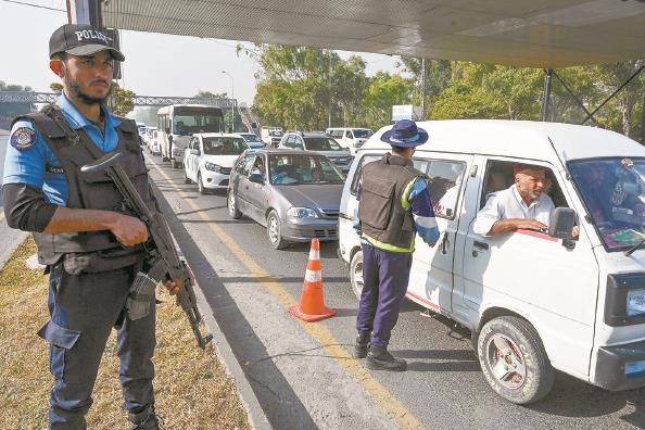 巴基斯坦警察盘查过往车辆 图IC