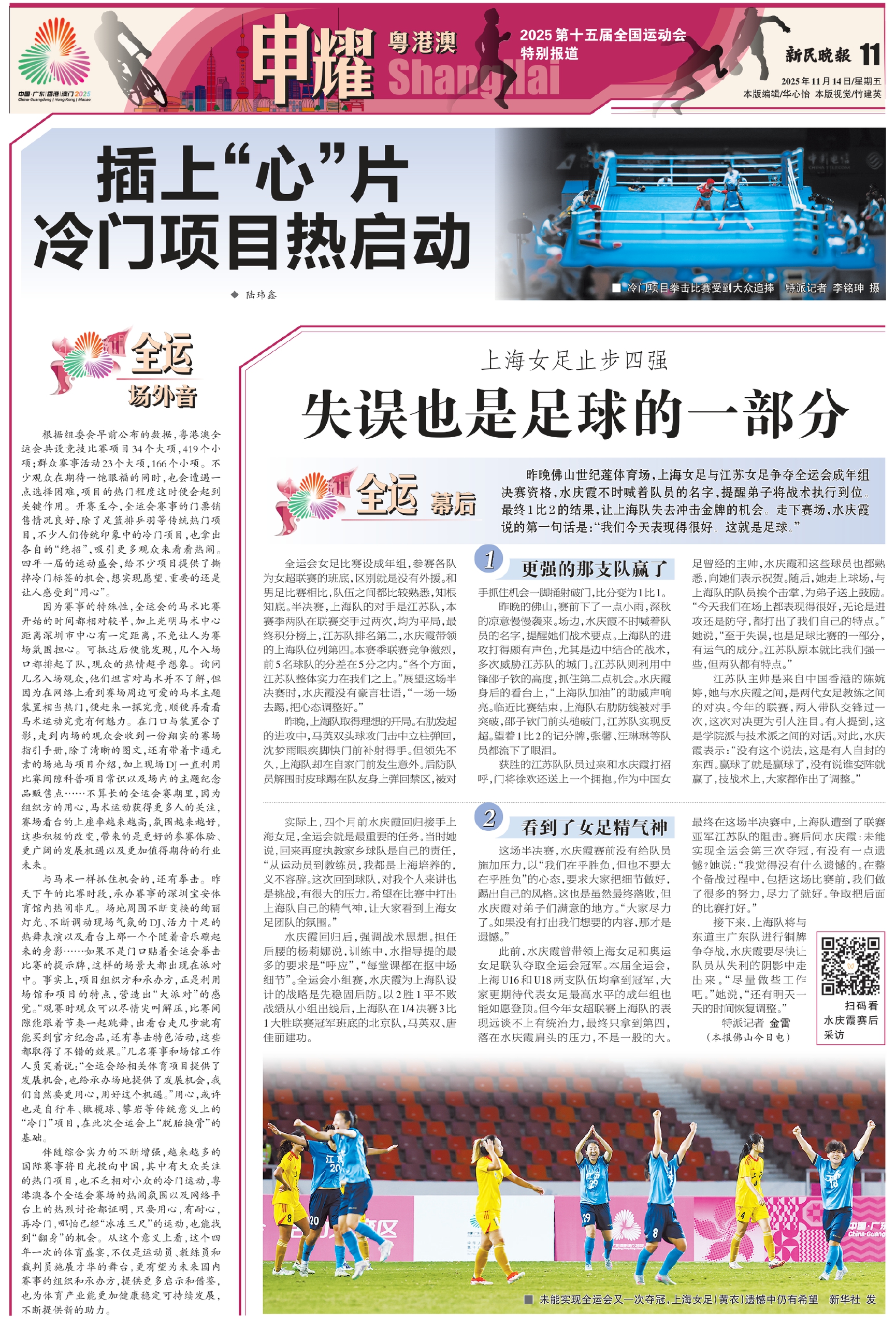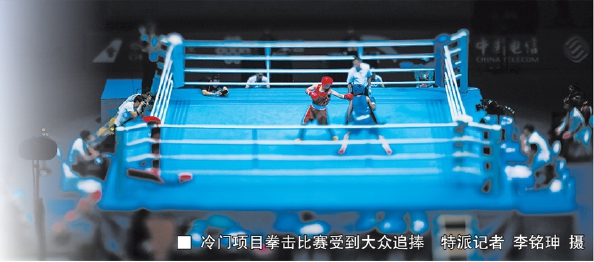 与马术一样抓住机会的,还有拳击。昨天下午的比赛时段,承办赛事的深圳宝安体育馆内热闹非凡。场地周围不断变换的绚丽灯光、不断调动现场气氛的DJ、活力十足的热舞表演以及看台上那一个个随着音乐蹦起来的身影……如果不是门口贴着全运会拳击比赛的提示牌,这样的场景大都出现在派对中。事实上,项目组织方和承办方,正是利用场馆和项目的特点,营造出“大派对”的感觉。“观赛时观众可以尽情尖叫解压,比赛间隙能跟着节奏一起跳舞,出看台走几步就有能买到官方纪念品,还有拳击特色活动,这些都取得了不错的效果。”几名赛事和场馆工作人员笑着说:“全运会给相关体育项目提供了发展机会,也给承办场地提供了发展机会,我们自然要更用心,用好这个机遇。”用心,或许也是自行车、橄榄球、攀岩等传统意义上的“冷门”项目,在此次全运会上“脱胎换骨”的基础。