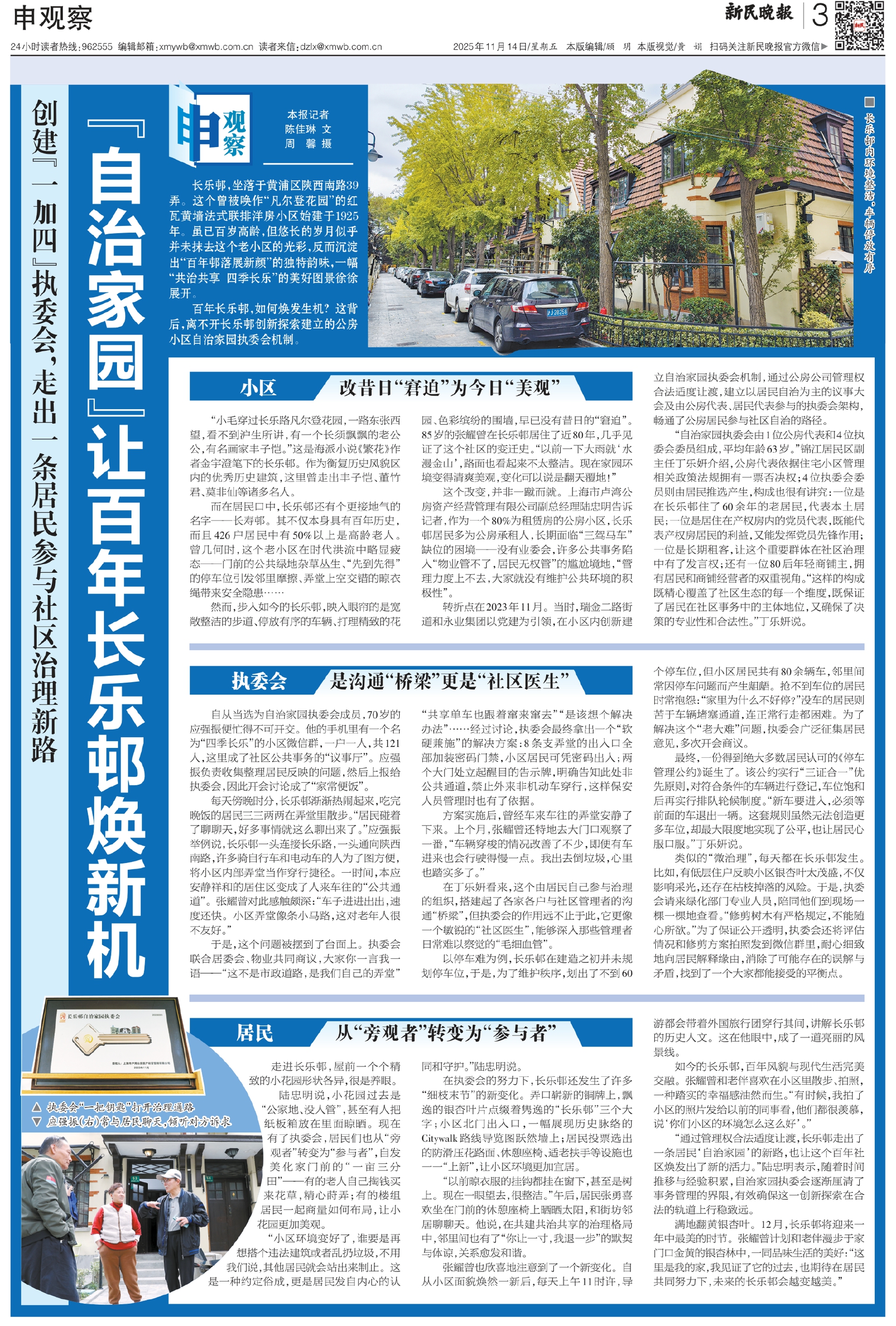 “自治家园执委会由1位公房代表和4位执委会委员组成,平均年龄63岁。”锦江居民区副主任丁乐妍介绍,公房代表依据住宅小区管理相关政策法规拥有一票否决权;4位执委会委员则由居民推选产生,构成也很有讲究:一位是在长乐邨住了60余年的老居民,代表本土居民;一位是居住在产权房内的党员代表,既能代表产权房居民的利益,又能发挥党员先锋作用;一位是长期租客,让这个重要群体在社区治理中有了发言权;还有一位80后年轻商铺主,拥有居民和商铺经营者的双重视角。“这样的构成既精心覆盖了社区生态的每一个维度,既保证了居民在社区事务中的主体地位,又确保了决策的专业性和合法性。”丁乐妍说。