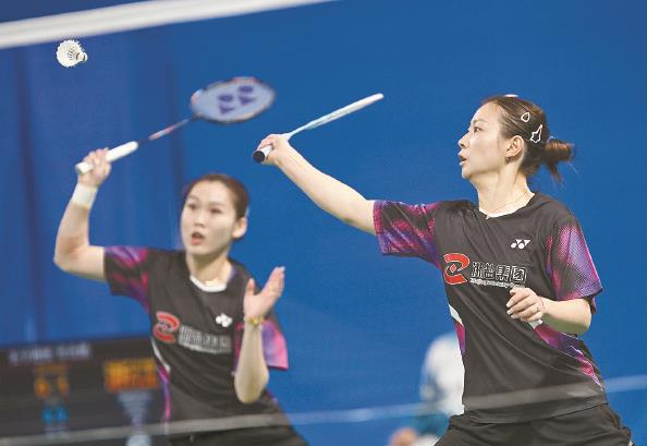 黄雅琼(右)和队友在半决赛中 图 新华社
