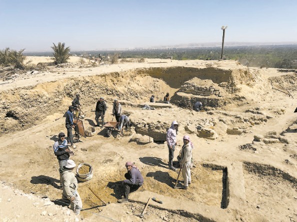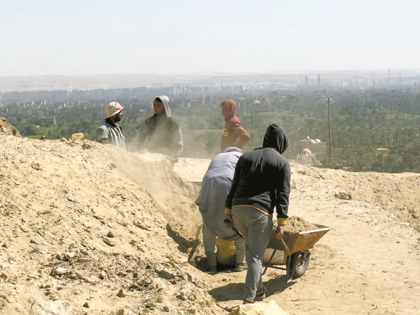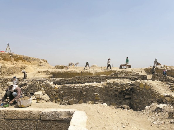 中埃联合考古萨卡拉项目中埃队员在萨卡拉金字塔下的考古工作现场