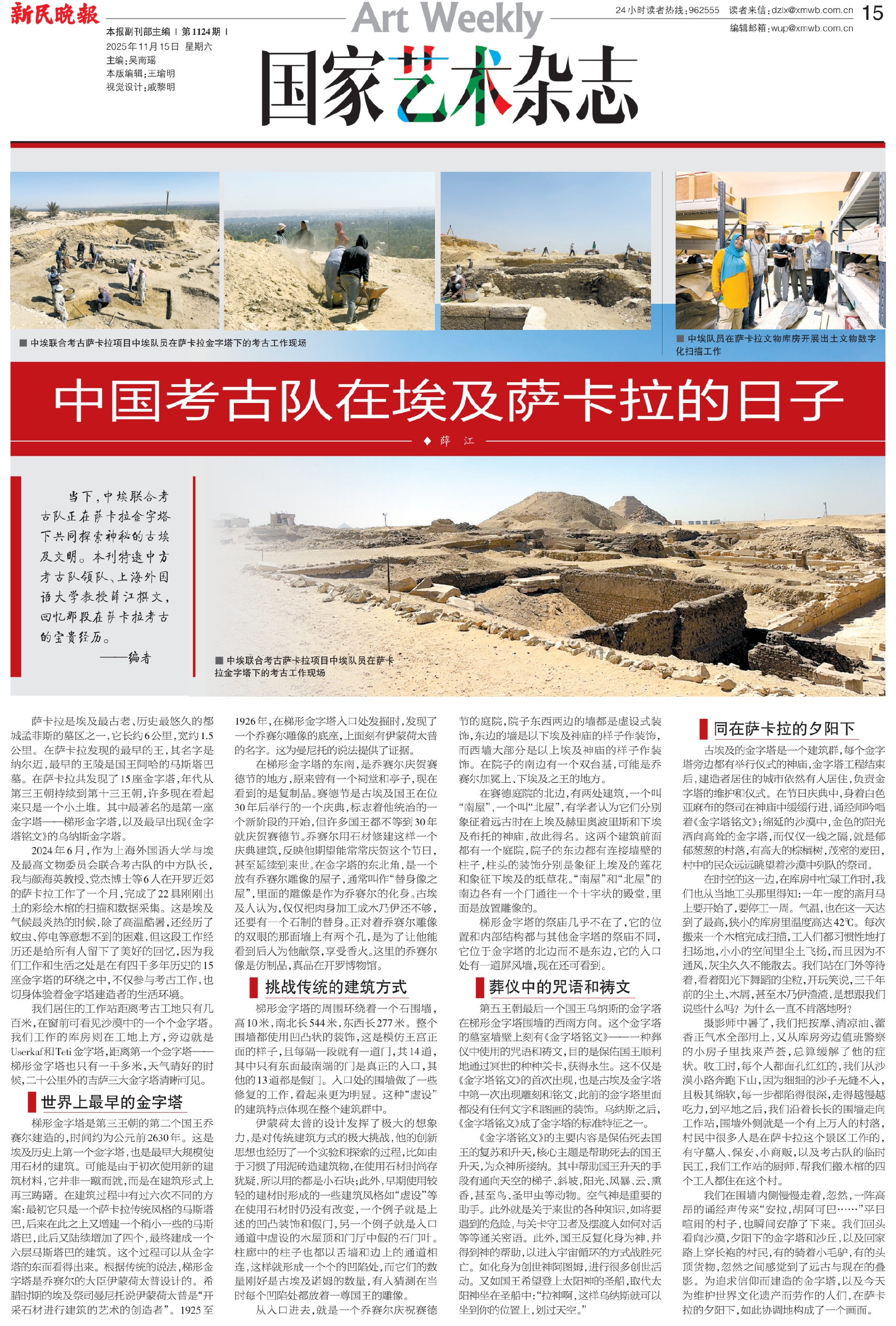 当下,中埃联合考古队正在萨卡拉金字塔下共同探索神秘的古埃及文明。本刊特邀中方考古队领队、上海外国语大学教授薛江撰文,回忆那段在萨卡拉考古的宝贵经历。