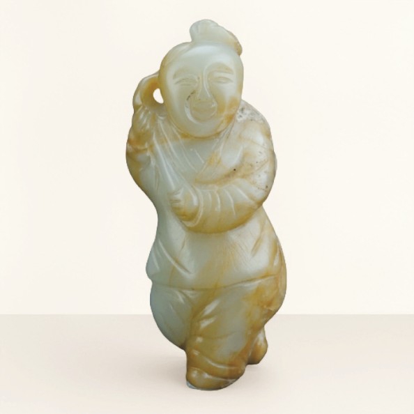 童子持莲(亦称童子持荷)因承载多重美好寓意,成为我国古代玉器、陶瓷、木雕等艺术品中常见的经典纹饰。其形象多样,或手持荷叶,或怀抱荷花,或紧握莲蓬,分别寄托着和和美美、吉祥如意、多子多福的祈愿。武汉博物馆馆藏的三件宋、元、清时期持莲童子玉雕,以灵动造型与精湛工艺,生动诠释了这一题材的艺术魅力。