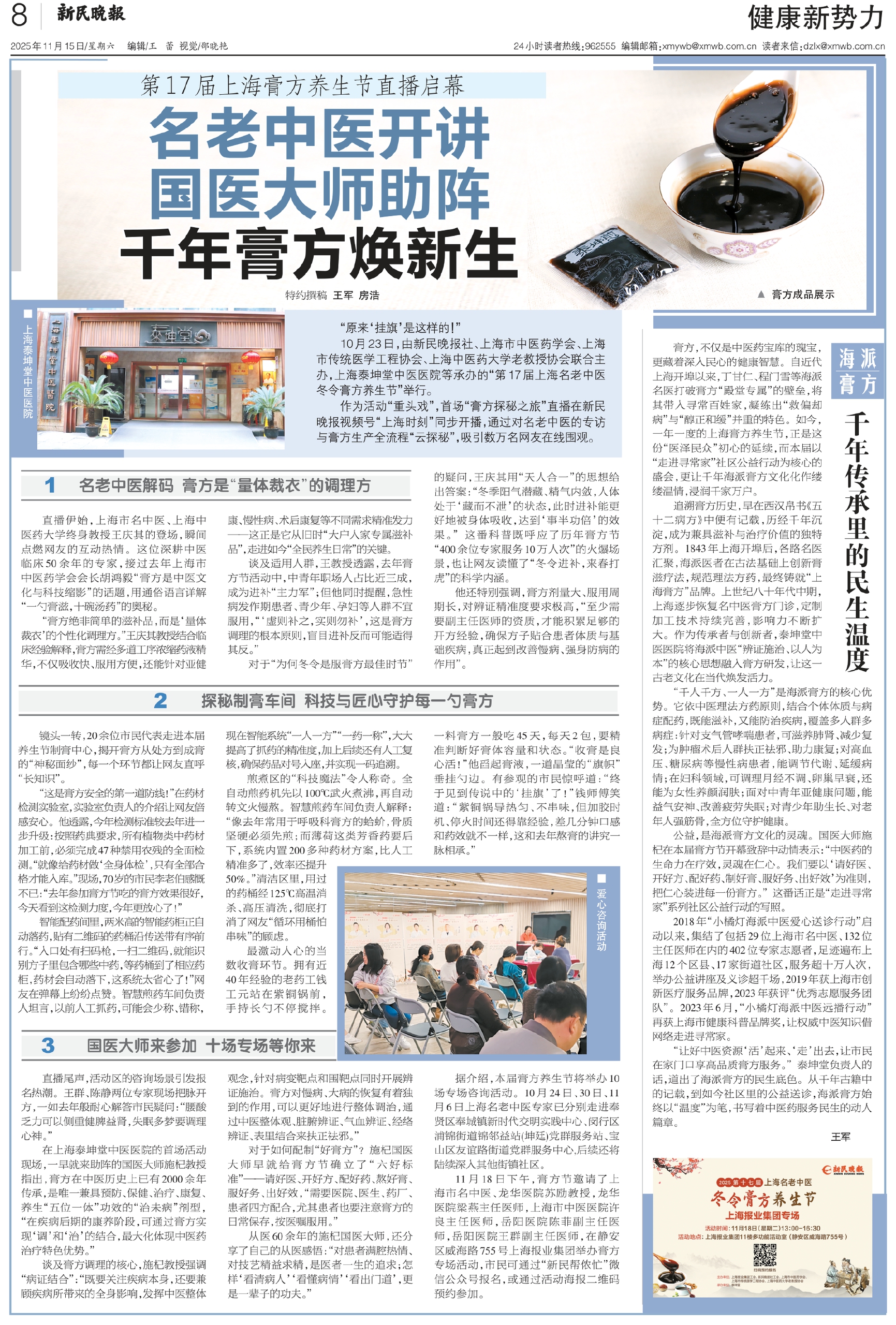 10月23日,由新民晚报社、上海市中医药学会、上海市传统医学工程协会、上海中医药大学老教授协会联合主办,上海泰坤堂中医医院等承办的“第17届上海名老中医冬令膏方养生节”举行。